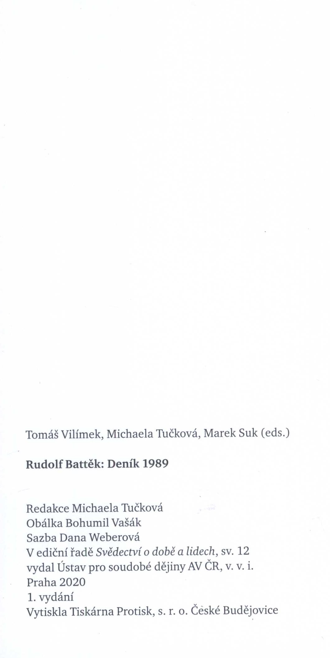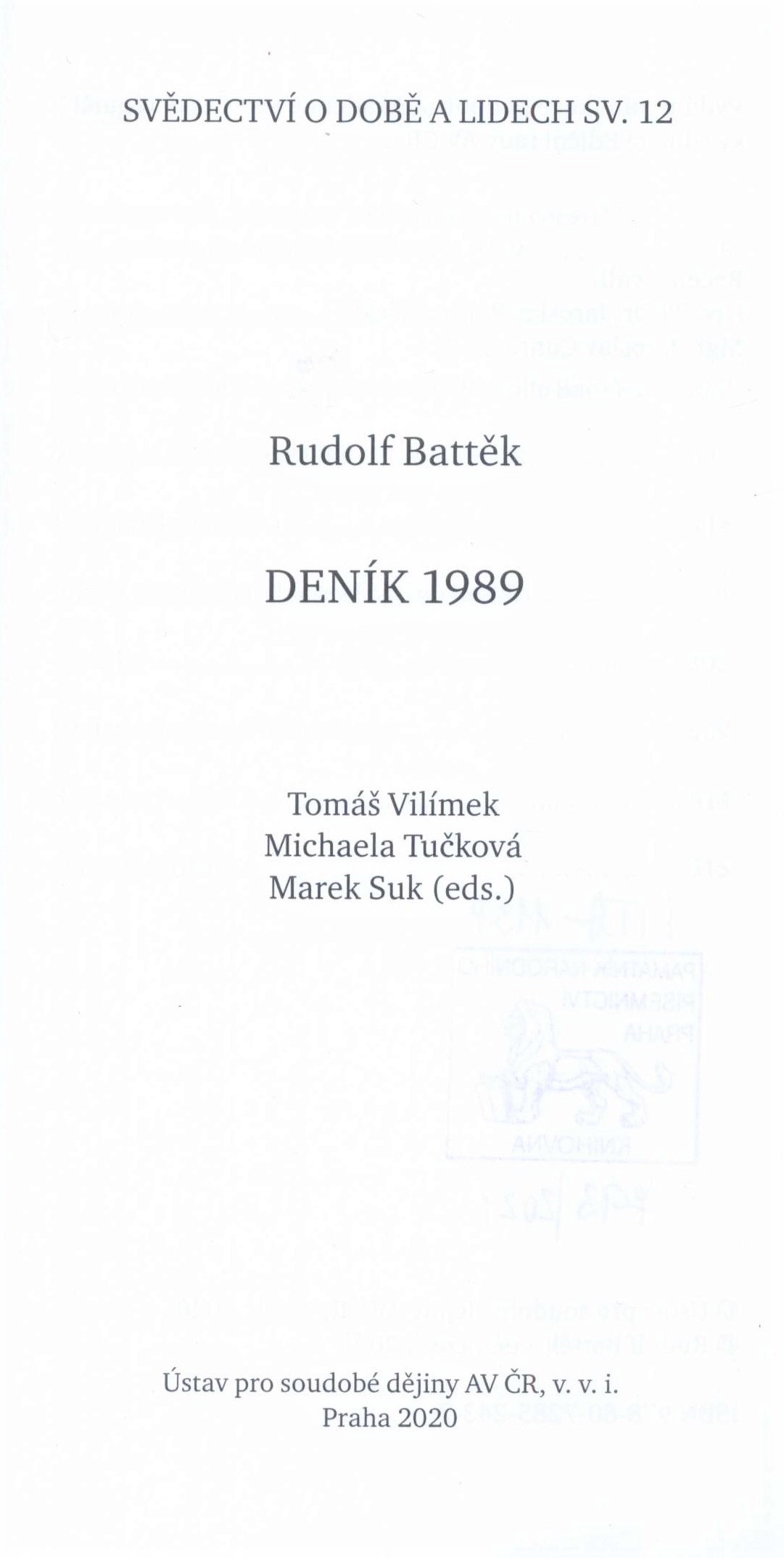 1. Title informationRudolf Battěk : deník 1989 / Tomáš Vilímek, Michaela Tučková, Marek Suk (eds.) ; obálka Bohumil Vašák
