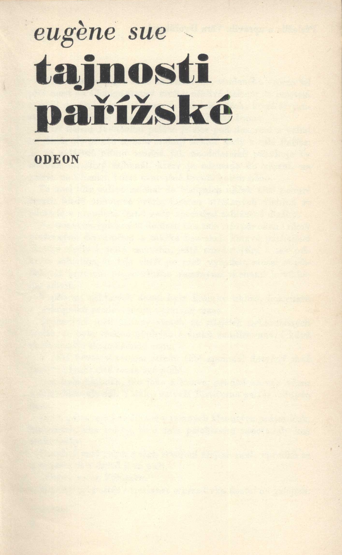 1. Title informationTajnosti pařížské / Eugène Sue ; z francouzského originálu Les Mystères de Paris ... přeložila a upravila Věra Dvořáková