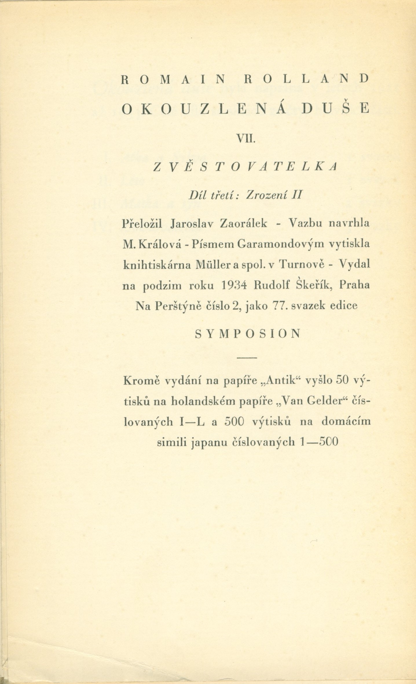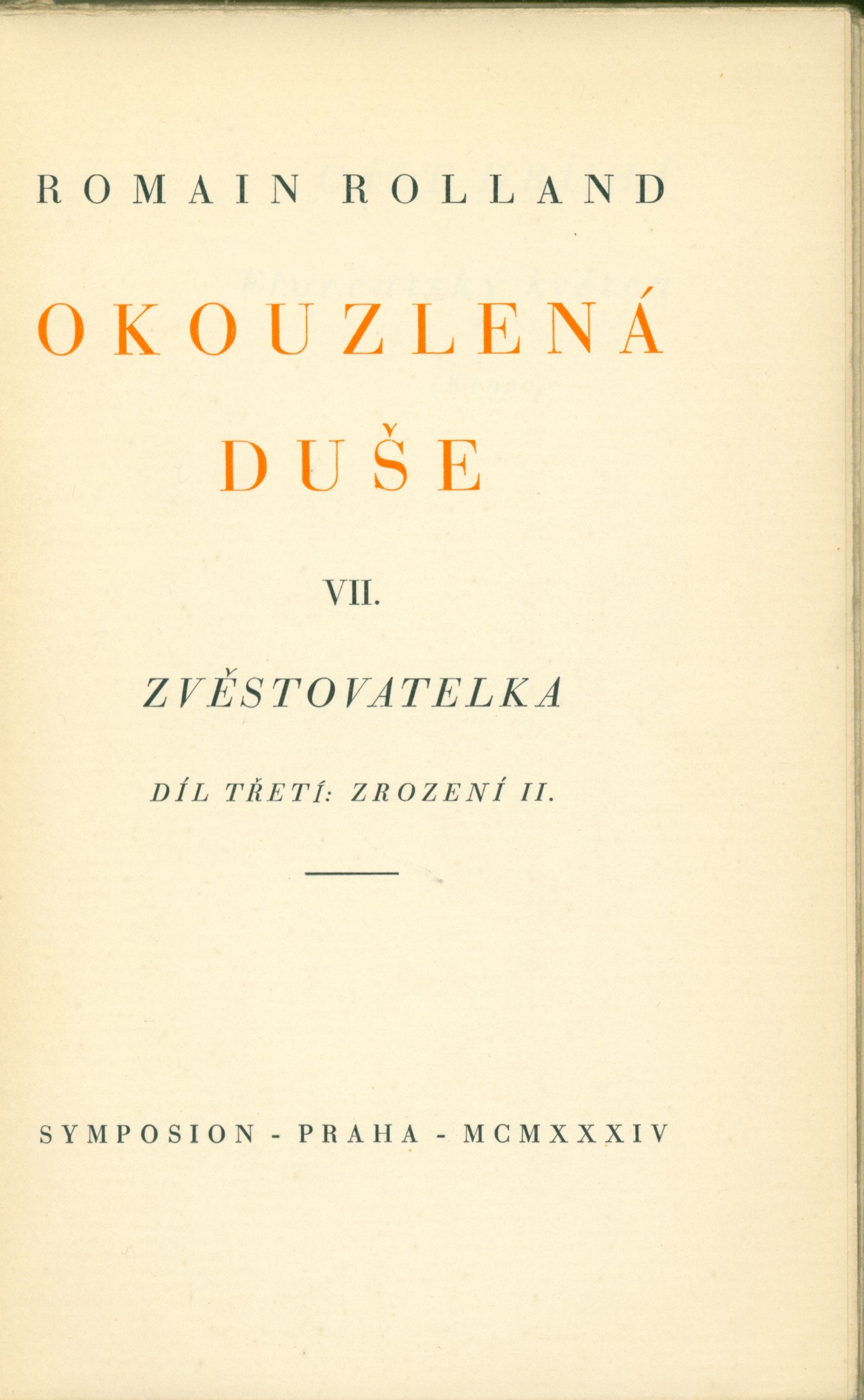 1. Title informationOkouzlená duše. VII., Zvěstovatelka. Díl třetí, Zrození II. / Romain Rolland ; přeložil Jaroslav Zaorálek