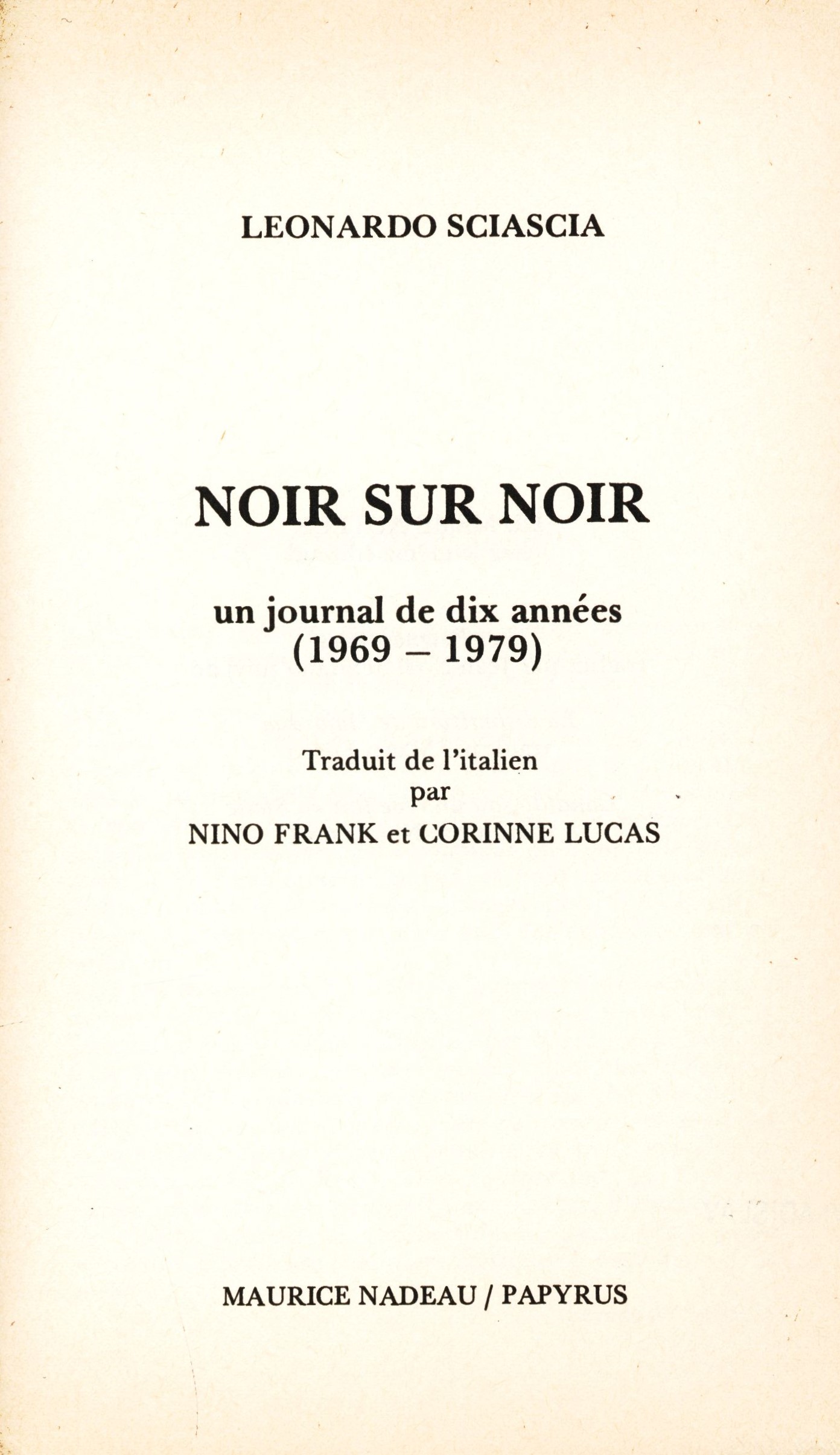 1. Title informationNoir sur noir : un journal de dix années (1969-1979) / Leonardo Sciascia ; traduit par Nino Frank et Corinne Lucas