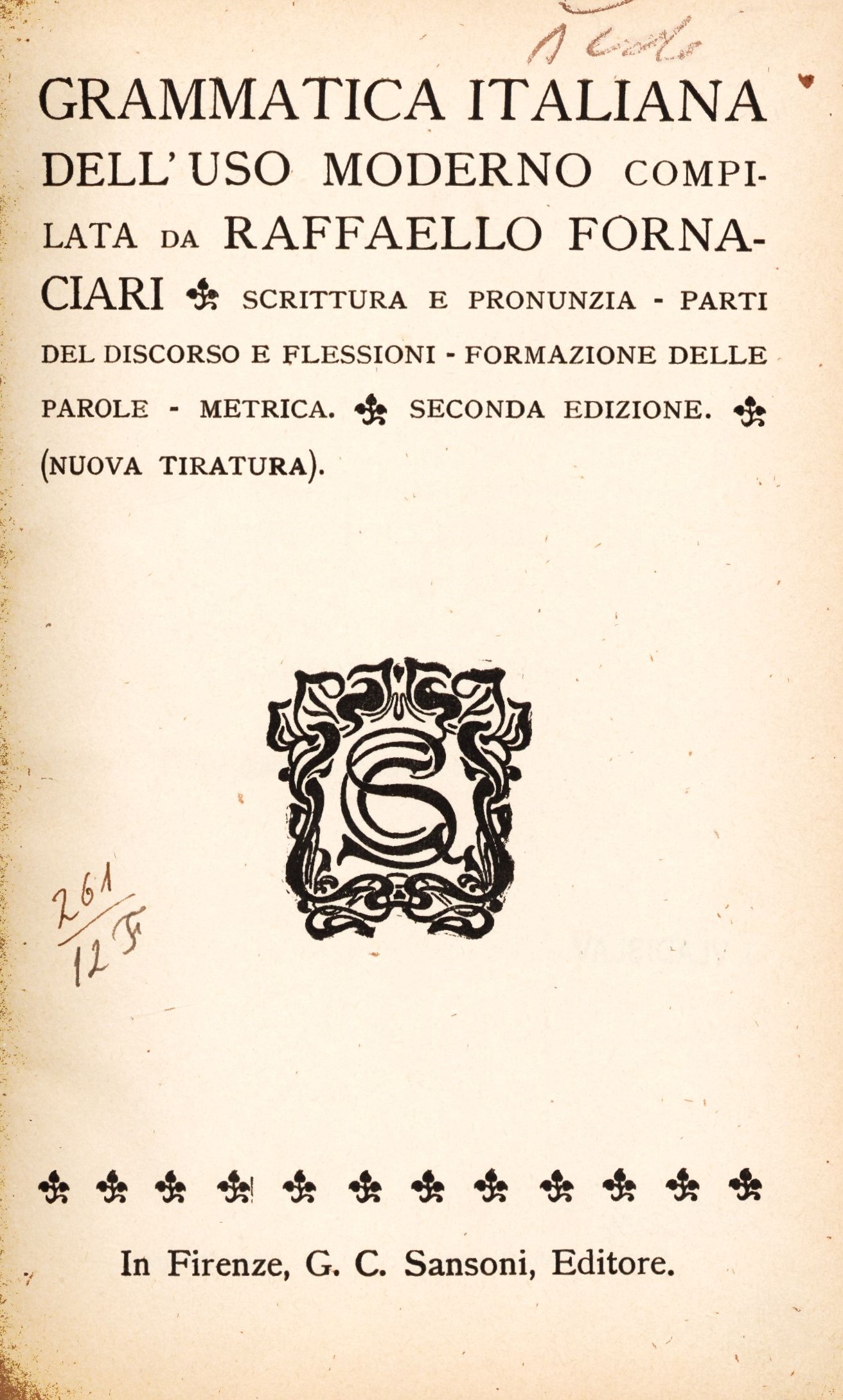 1. Title informationGrammatica italiana dell'uso moderno : scrittura e pronunzia - parti del discorso e flessioni - formazione delle parole - metrica / compilata da Raffaello Fornaciari
