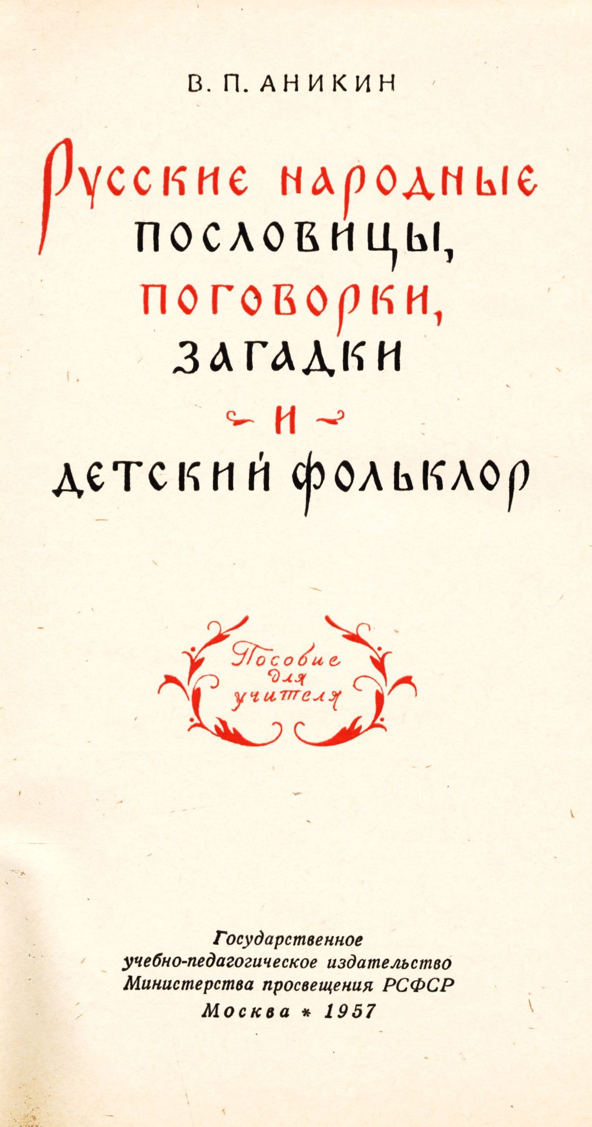 1. Title informationRusskije narodnyje poslovicy, pogovorki, zagadki i detskij fol'klor : posobije dlja učitelja / V.P. Anikin