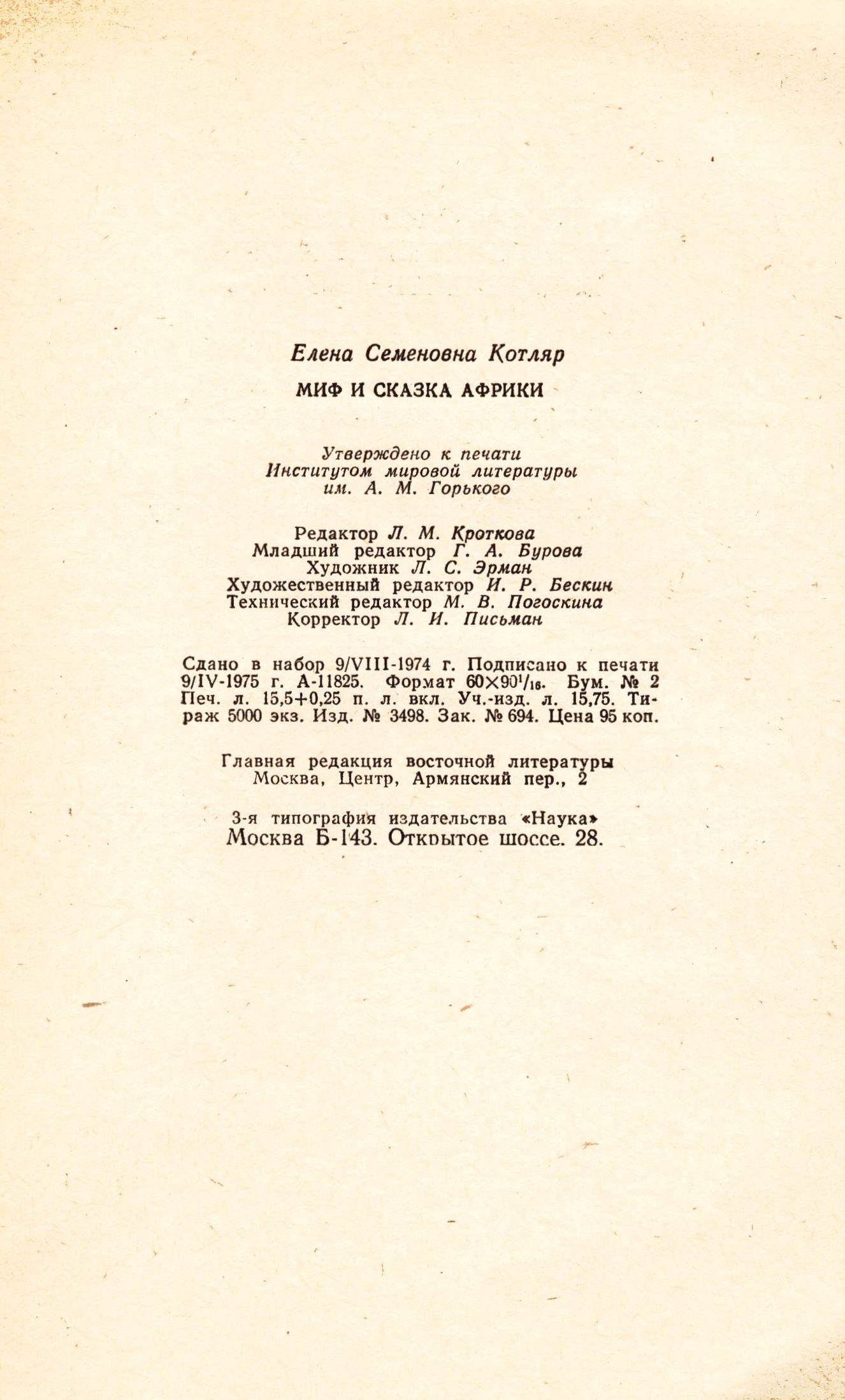 1. Title informationMif i skazka Afriki / E. S. Kotljar