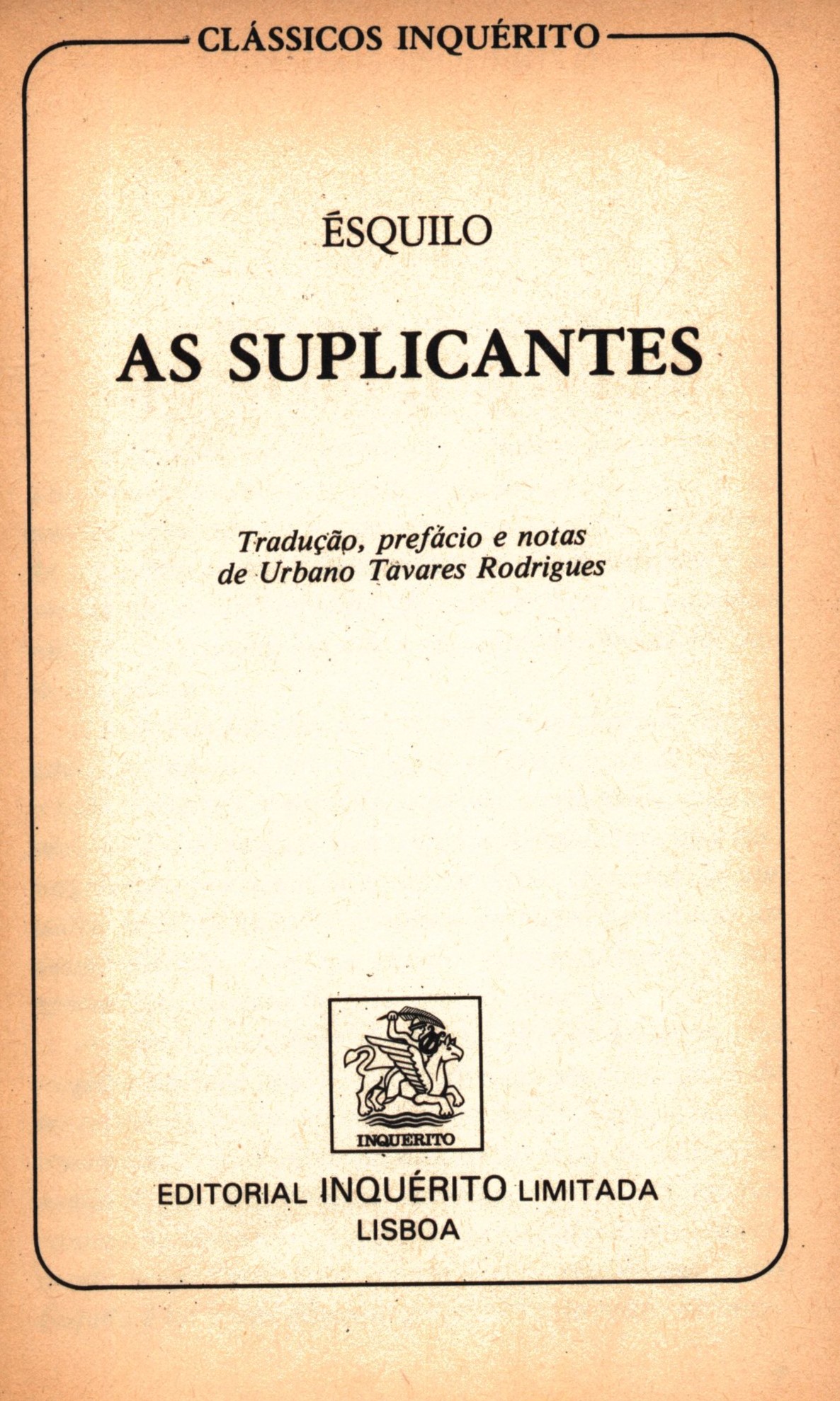 1. Title informationAs suplicantes / Ésquilo ; tradução, prefácio e notas de Urbano Tavares Rodrigues ; capa: estúdios P. E. A. ; editor: Francisco Lyon de Castro