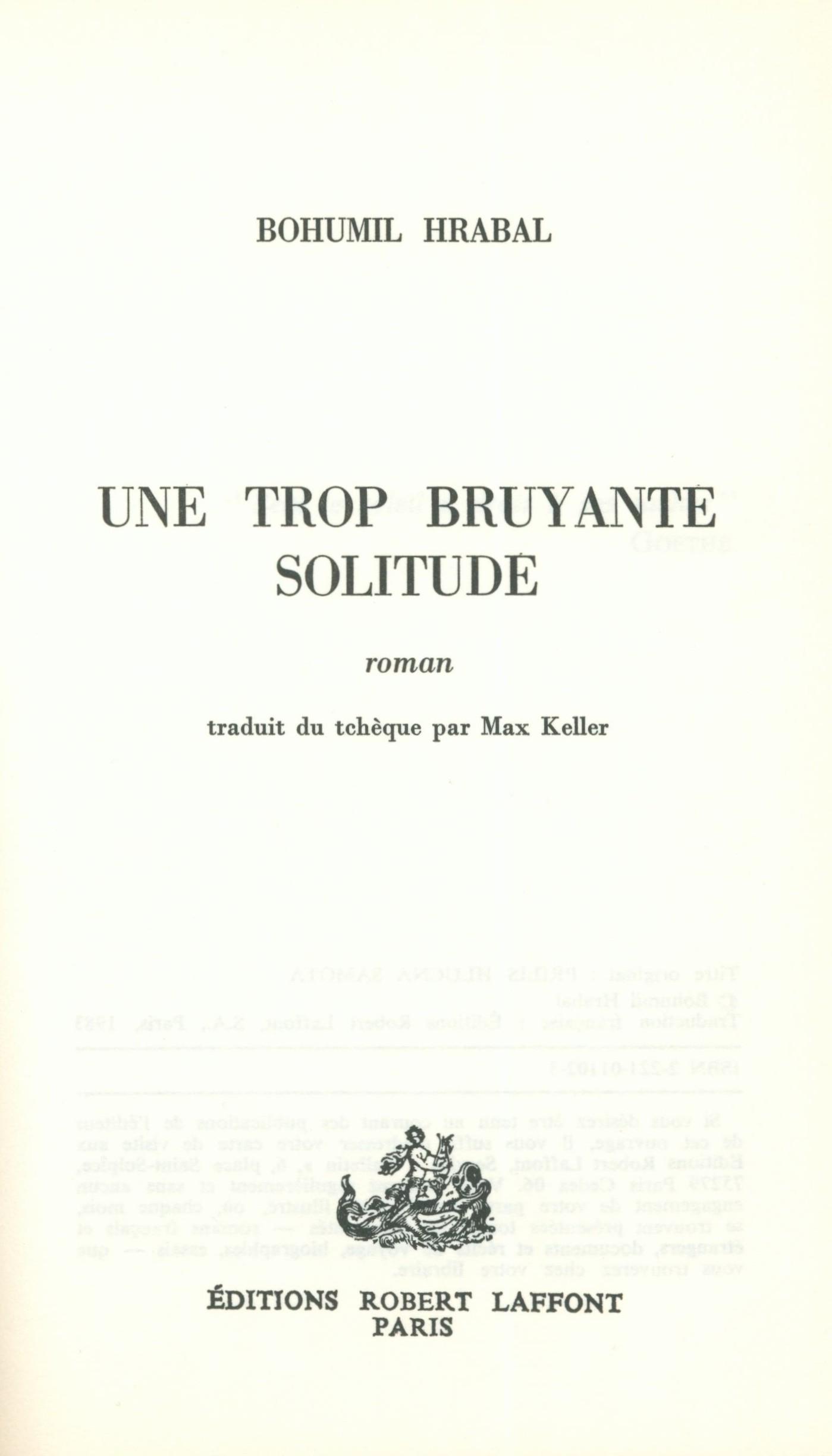 1. Title informationUne trop bruyante solitude : roman / Bohumil Hrabal ; traduit du tchèque par Max Keller