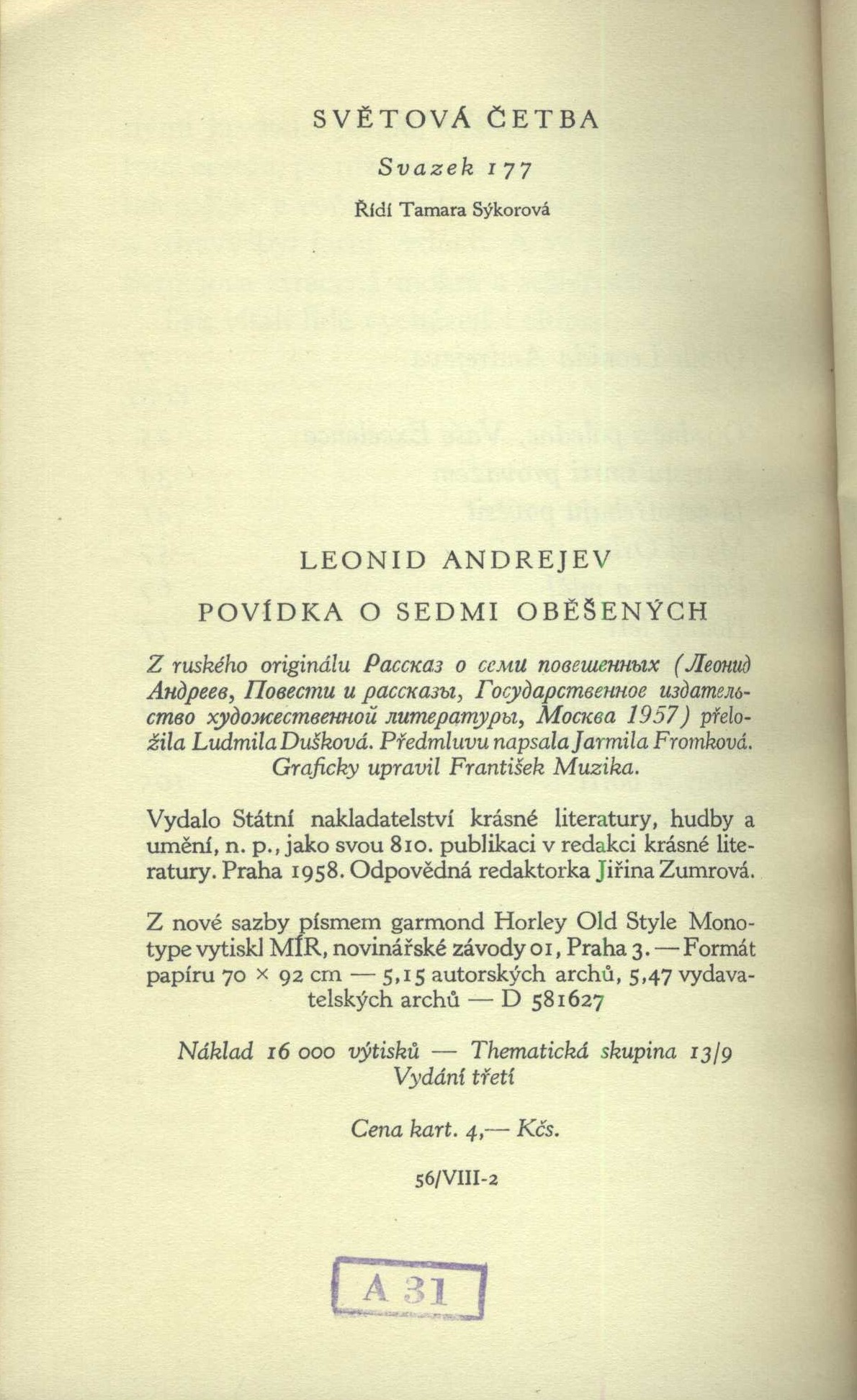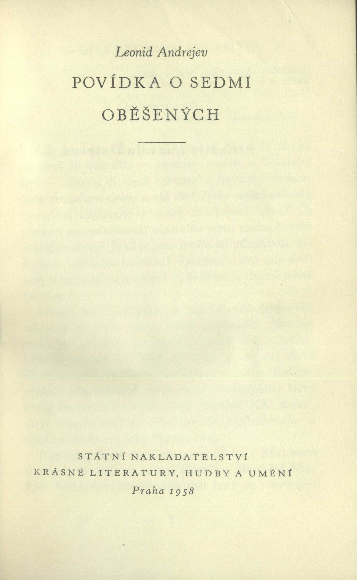 2. Title informationPovídka o sedmi oběšených / Leonid Andrejev ; z ruského originálu Rasskaz o semi povešennych přeložila Ludmila Dušková