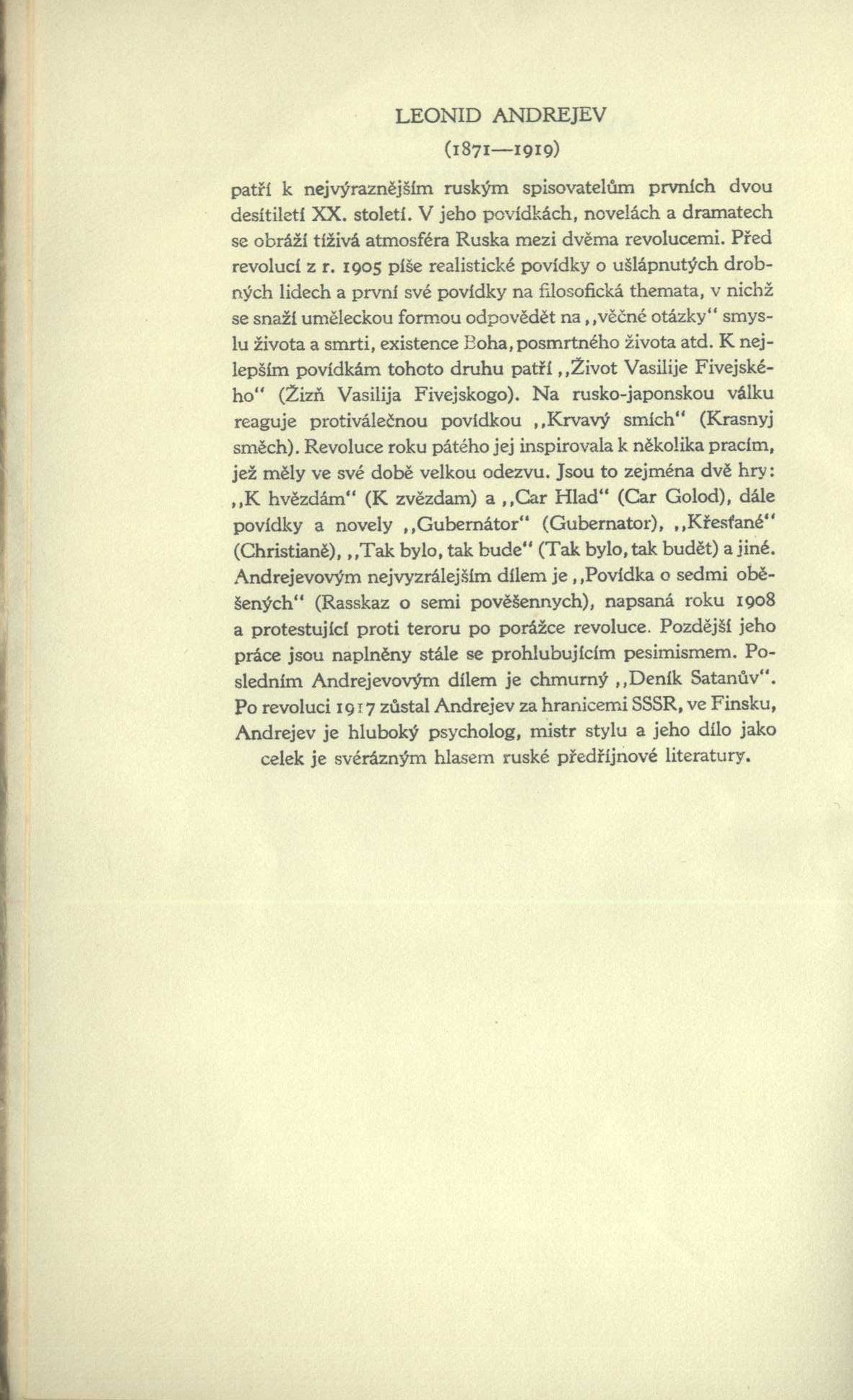 Keywords ruská literatura * próza * Andrejev L. N. * povídka * český překlad * Dušková L. * r. 1958