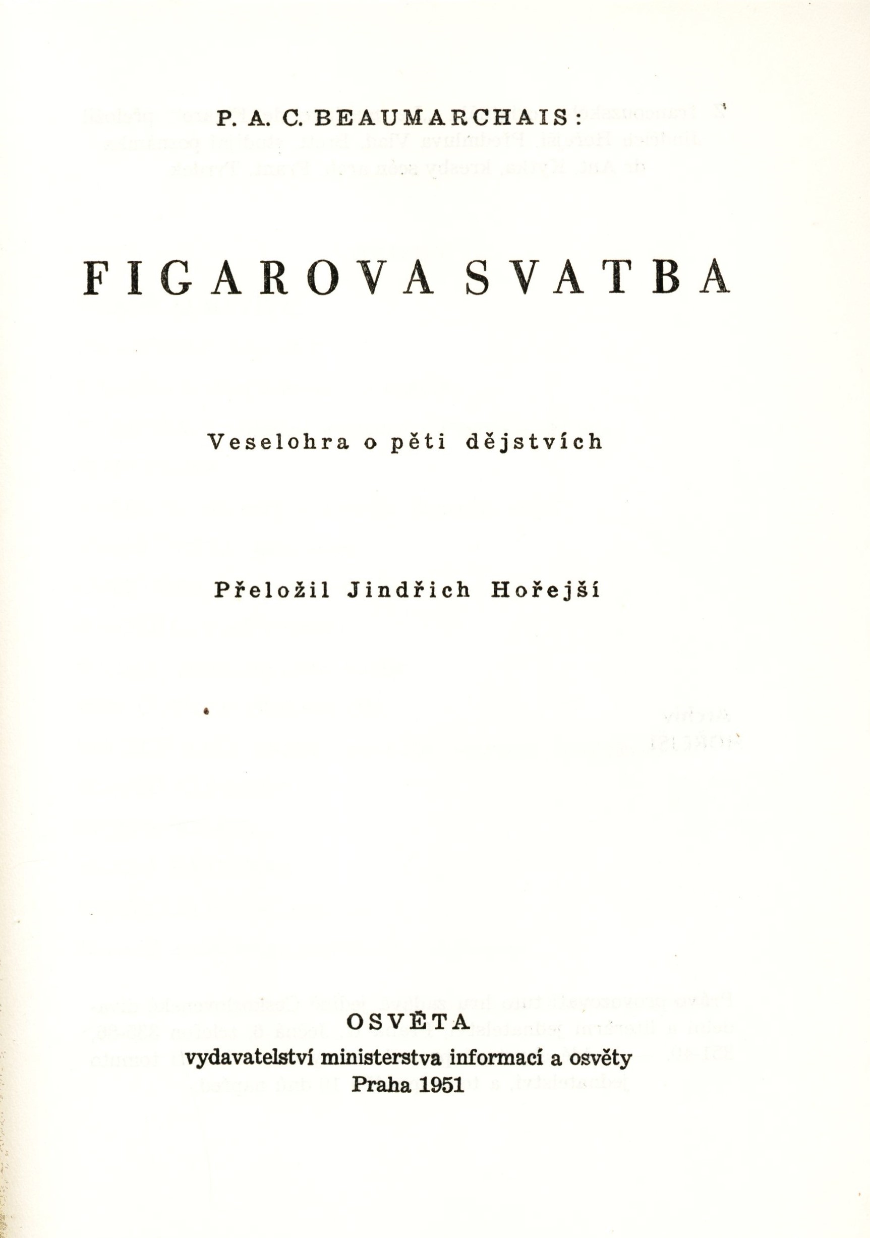 1. Title informationFigarova svatba : Veselohra o pěti dějstvích / P. A. C. Beaumarchais ; přeložil Jindřich Hořejší