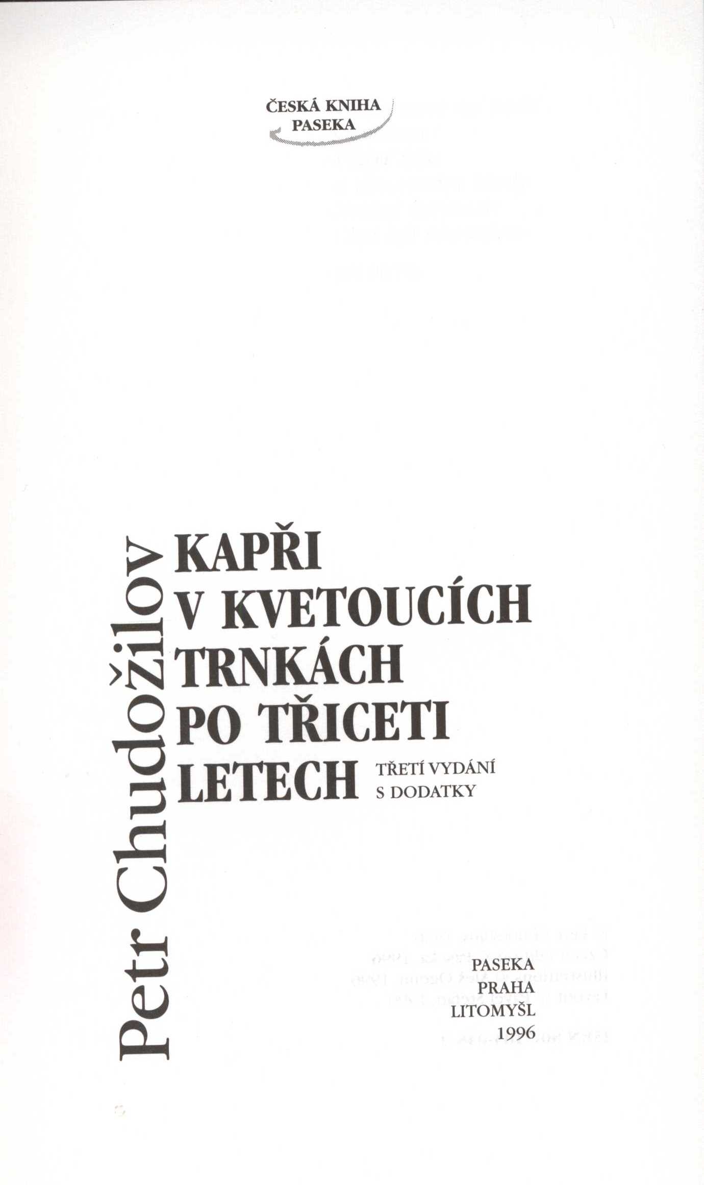 1. Title informationKapři v kvetoucích trnkách po třiceti letech / Petr Chudožilov ; [ilustrace Aleš Ogoun ; vazba a grafická úprava Pavel Štefan]