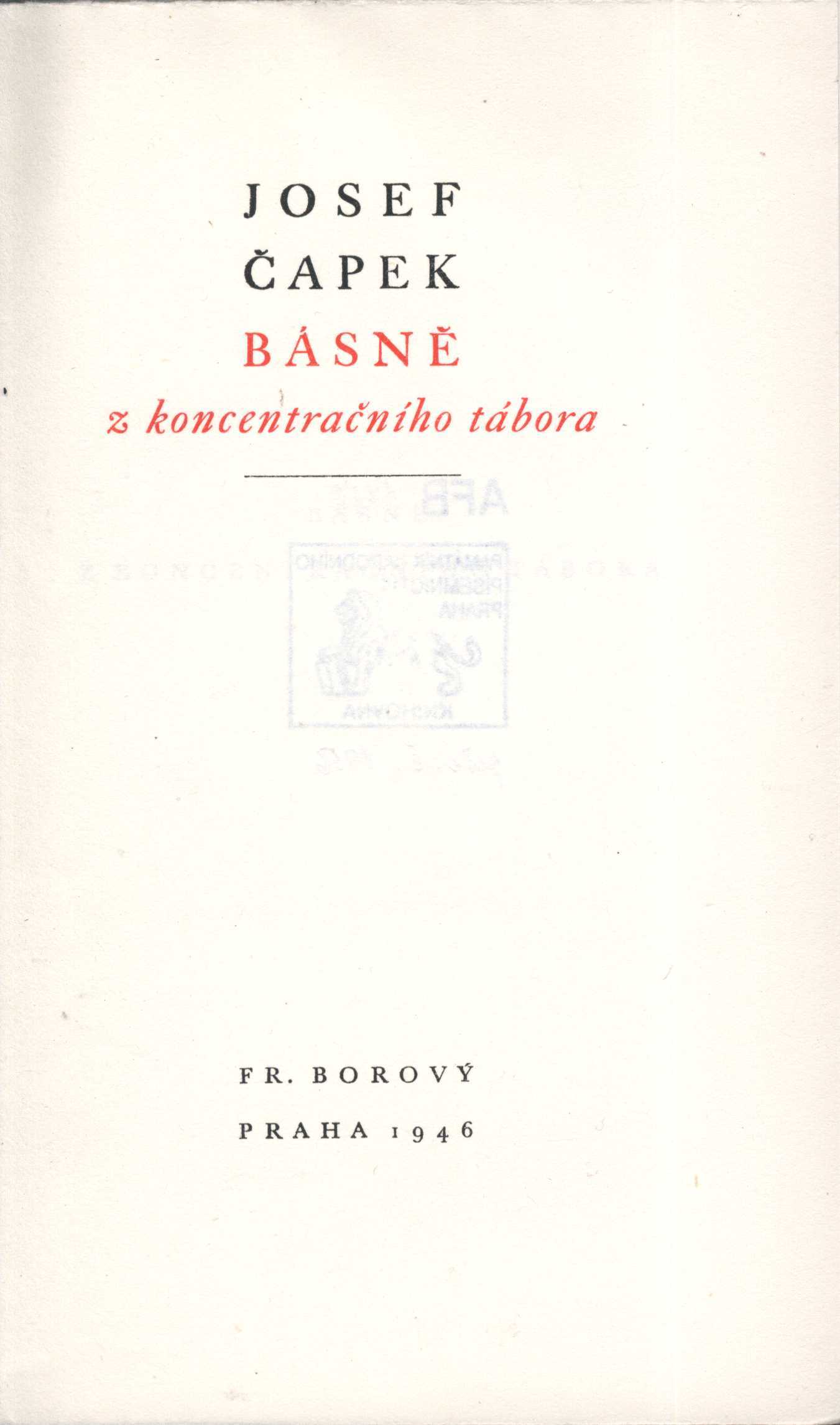 1. Title informationBásně z koncentračního tábora / Josef Čapek ; [obálka, vazba a grafická úprava Františka Muziky]