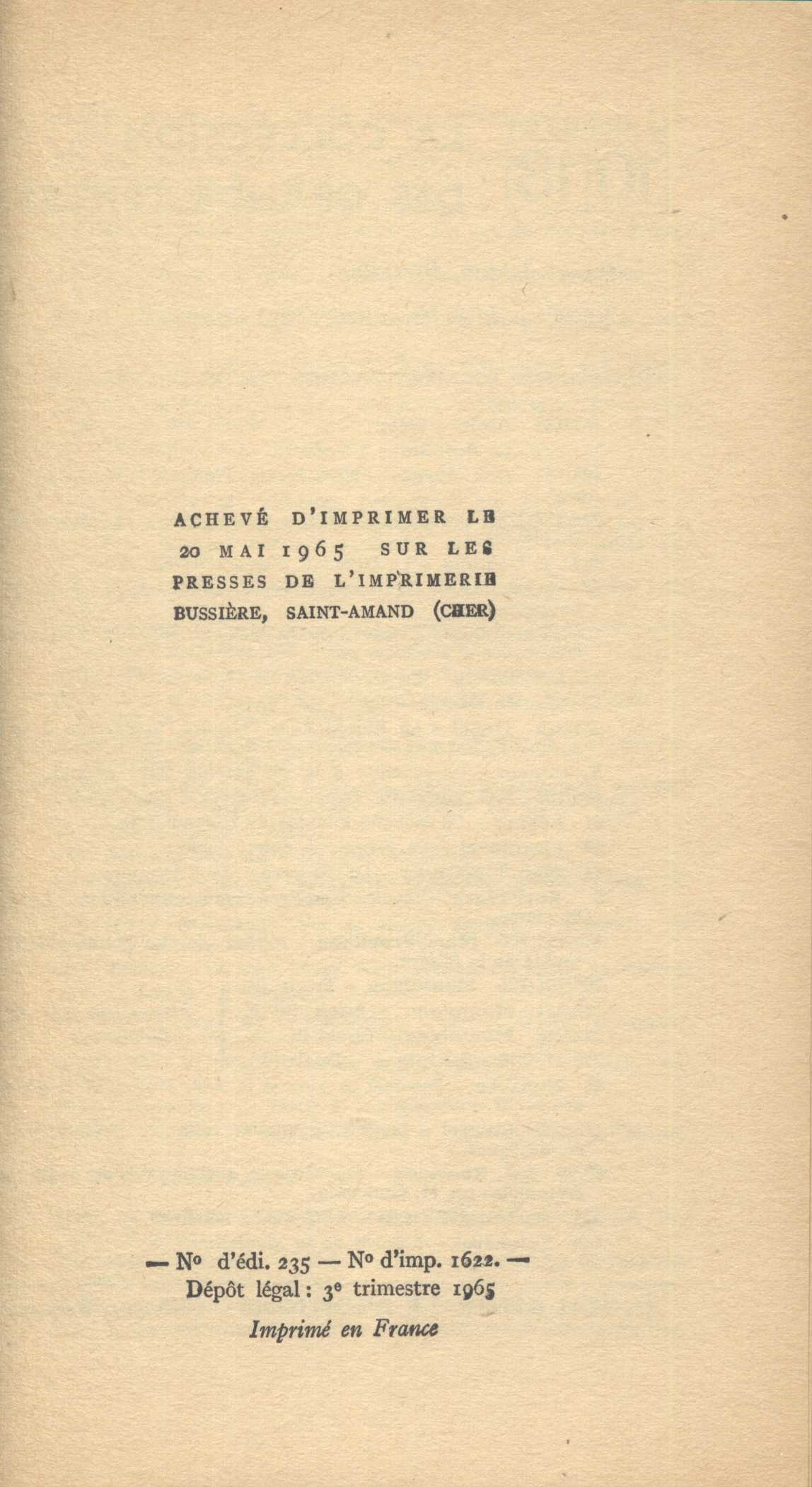PublicationParis : Union générale d'éditions, ©Éditions Jean-Jacques Pauvert, 1965