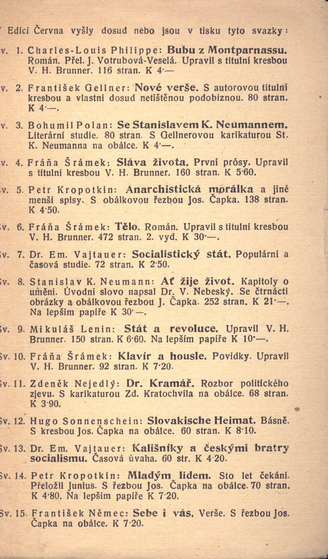 Title information Bouřlivé jaro : pátá kniha básní / Josef Hora Personal name Hora, Josef, 1891-1945 (Author) Další autoři Šimsová, Růžena, 1899- (Former owner) (Inscriber) Corporation Fr. Borový (firma) (Publisher) Polygrafia (nakladatelství a tiskárna, Brno) (Printer) Další var.názvy Pátá kniha básní Publication V Praze : nakladatel Fr. Borový, 1923 Manufacture V Brně : Polygrafie Scope 71 stran ; 17 cm ISBN (Brožováno) Edition Edice Června ; sv. XXIX