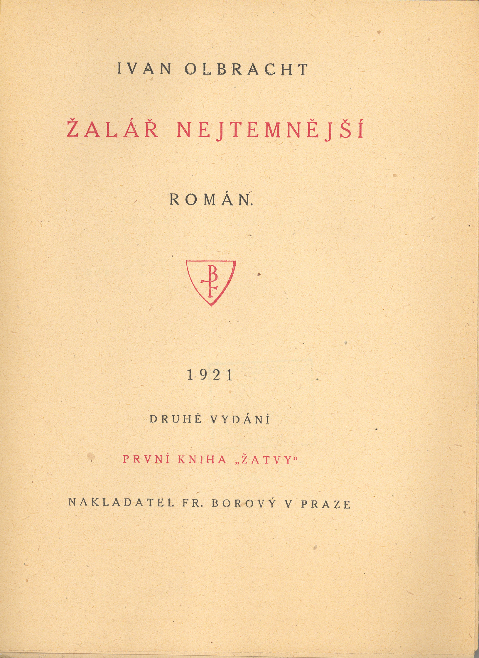 Title information Žalář nejtemnější : román / Ivan Olbracht Personal name Olbracht, Ivan, 1882-1952 (Author) Další autoři Brunner, Vratislav Hugo, 1886-1928 (Bookjacket designer) Corporation Fr. Borový (firma) (Publisher) Josef Kolanda (Praha) (Printer) Edition statement Druhé vydání Publication V Praze : nakladatel Fr. Borový, 1921 Manufacture (tiskem J. Kolandy) Scope 186, [2] s. ; 8° ISBN brož. Edition Žatva [I] 1. kniha