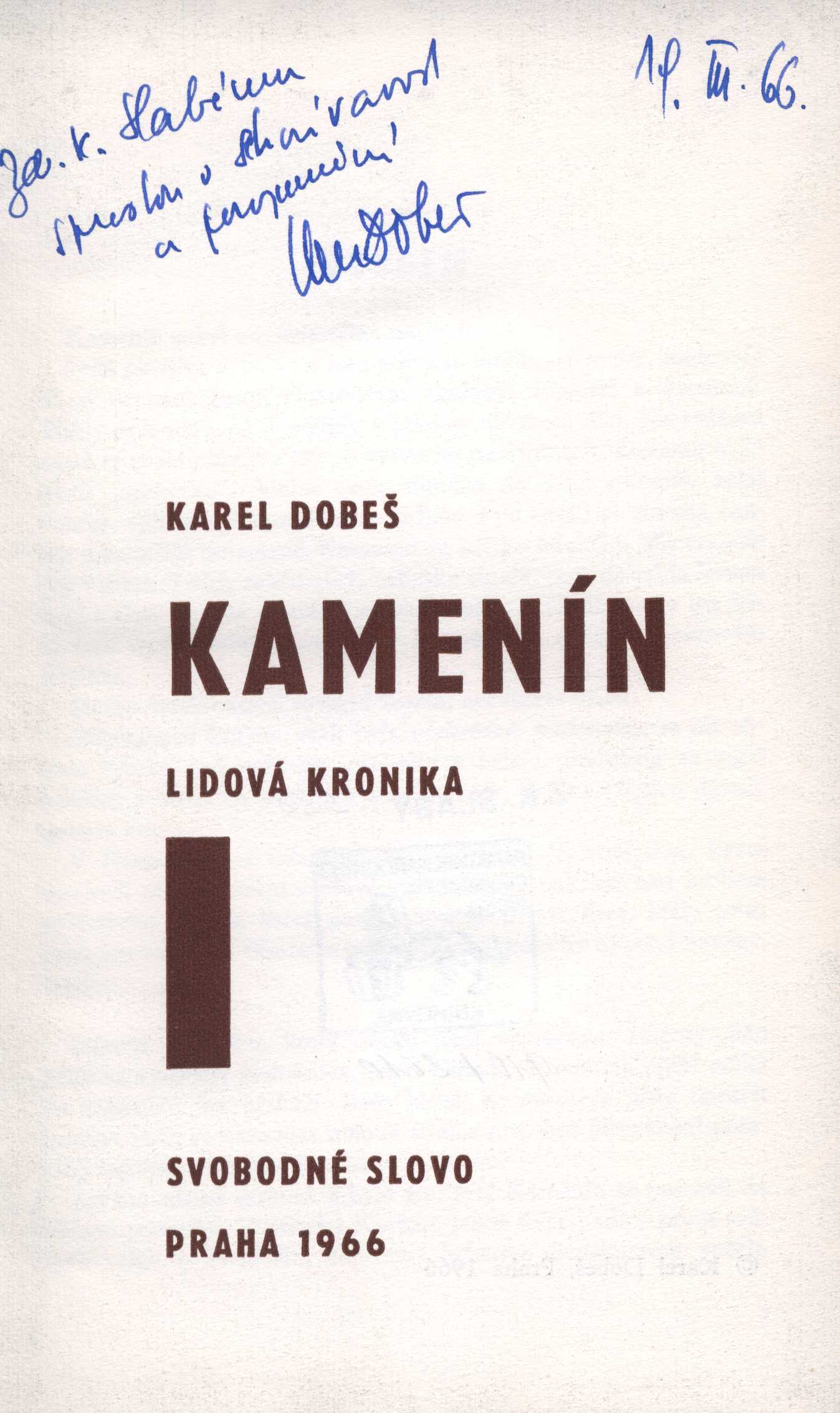 Title information Kamenín : lidová kronika / Karel Dobeš ; [ilustrace přebal a vazbu navrhl Karel Pokorný] Personal name Dobeš, Karel, 1922-2002 (Author) Další autoři Pokorný, Karel, 1944-2018 (Illustrator) Slabý, Zdeněk Karel, 1930-2020 (Dedicatee) Corporation Svobodné slovo (nakladatelství) (Publisher) Edition statement 1. vyd. Publication Praha : Svobodné slovo, 1966 Manufacture Tisk) Scope 211 s. : il. ISBN (váz.) Country Czech Republic Language Czech Note Zdob. obálka. -- Na zál. pozn. o knize a aut. s fotem. -- Frontispis. -- Celostr. ilustr.