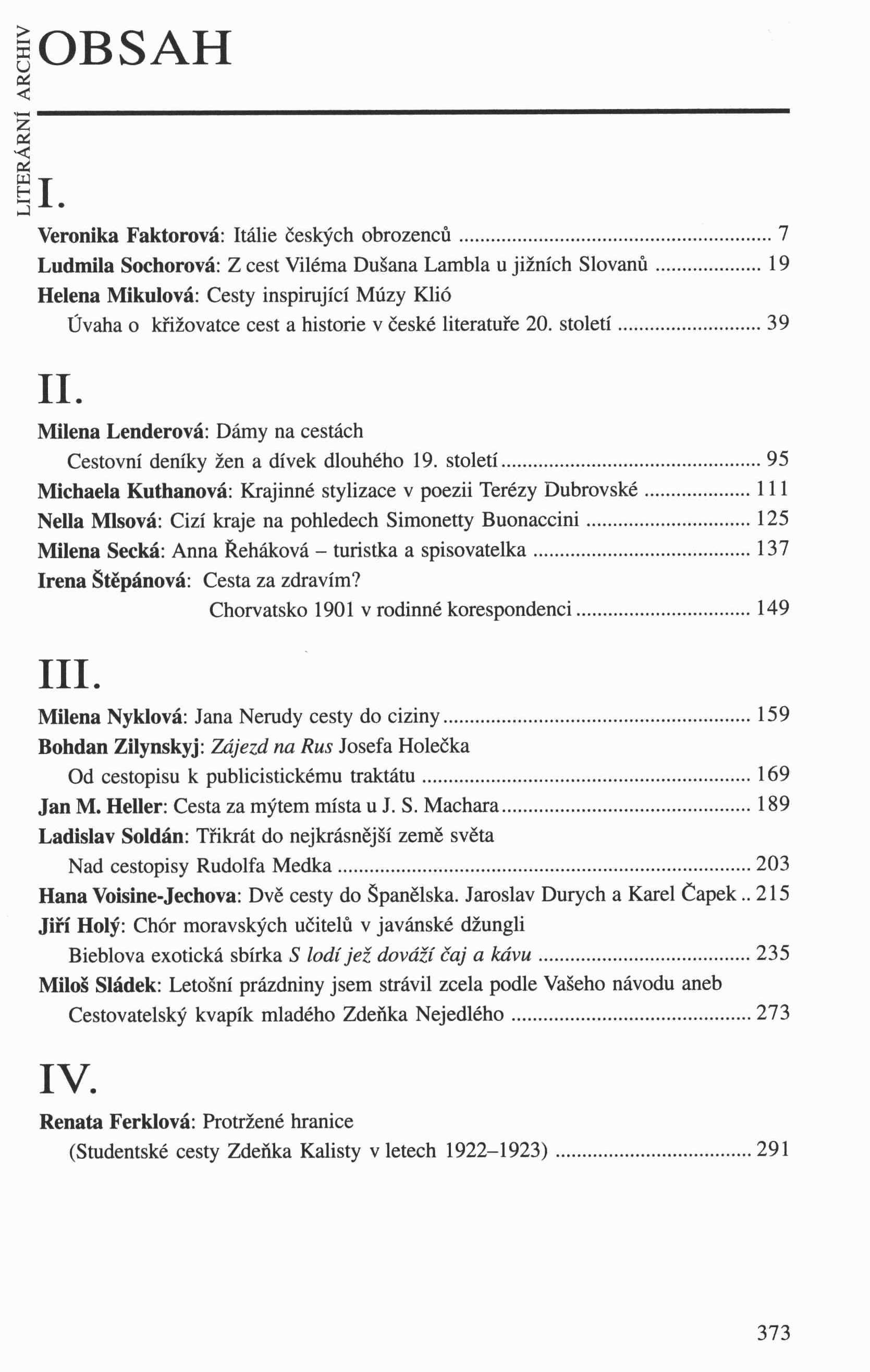 Title information Literární archiv : sborník Památníku národního písemnictví = Jahrbuch des Museums der tschechischen Literatur = Annual of the Museum of the Czech Literature = Almanach du Musée de la littérature tchèque. Múzy na cestách : ohlasy z cest do ciziny v dílech českých spisovatelů / odpovědná redaktorka Jarmila Schreiberová ; grafická úprava David Martinek ; obálka a technická redakce Zdeněk Freisleben Další autoři Schreiberová, Jarmila, 1949- (Editor) Martinek, David, 1972- (Book designer) Freisleben, Zdeněk, 1947- (Bookjacket designer) Corporation Památník národního písemnictví (muzeum literatury) (Publisher) Tiskárna GLOS Semily, s. r. o. (Printer) Roč., číslo 39, 2007 Další var.názvy Múzy na cestách : ohlasy z cest do ciziny v dílech českých spisovatelů Edition statement Vydání první Publication Praha : Památník národního písemnictví, 2007 Manufacture Semily : Tiskárna Glos Semily, s. r. o. Scope 374 stran : ilustrace, portréty, faksimile ; 23 cm ISBN 978-80-85085-80-8 (brožováno) Country Czech Republic Language Czech Note Čb. fotografie a fotografie ilustrací. - Obsahuje bibliografie a bibliografické odkazy. - Anglická resumé. - 400 výtisků