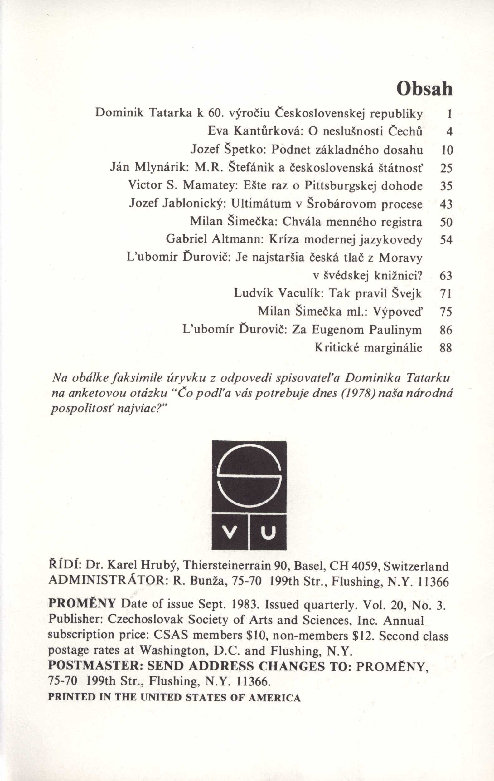 Note Čb. faksimile. - Obsahuje bibliografické odkazy. - Číslo 3 vyšlo pod názvem Premeny ve slovenštině a je věnované slovenským problémům