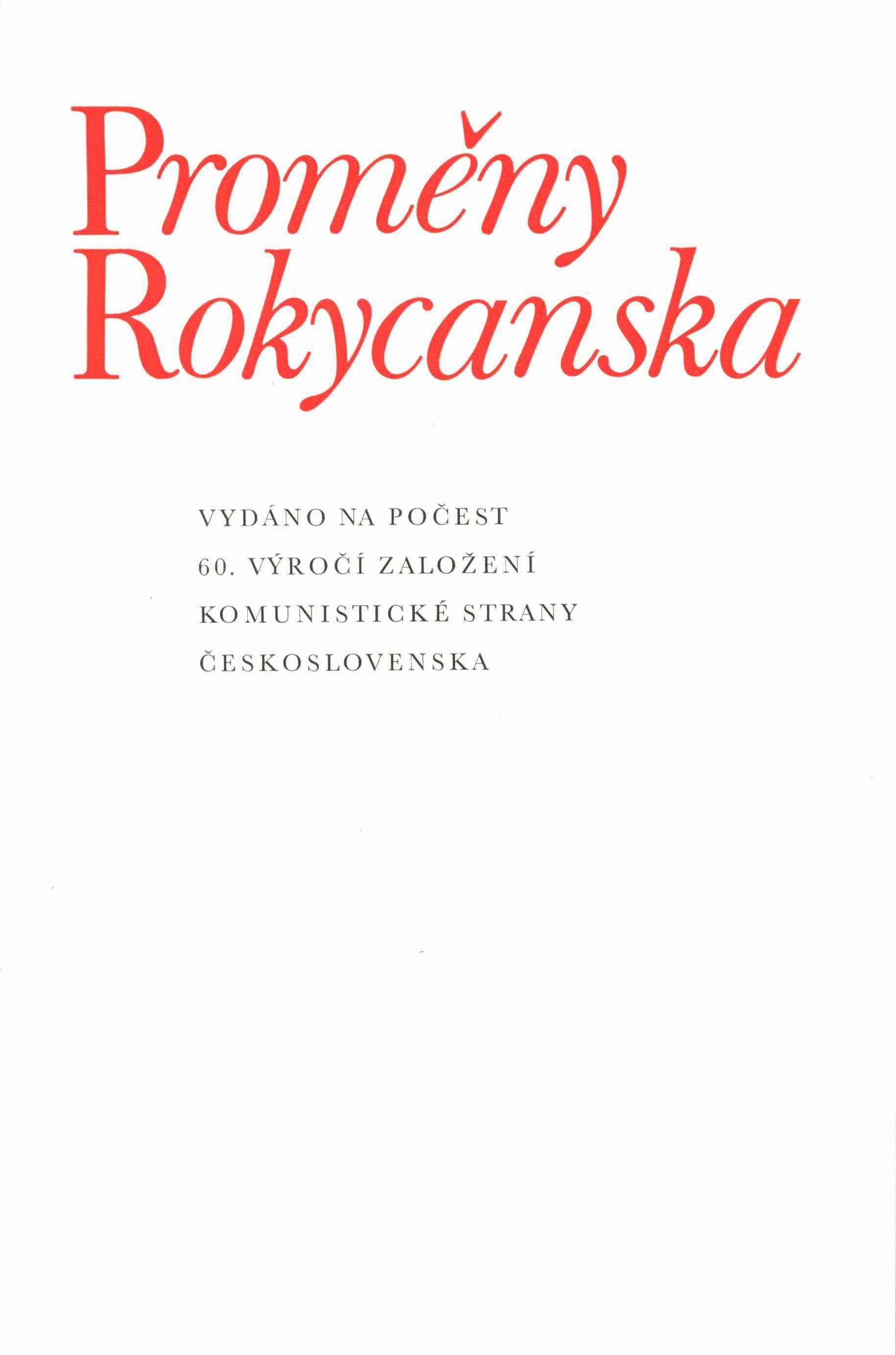 Title information Proměny Rokycanska : vydáno na počest 60. výročí založení Komunistické strany Československa / [zpracoval Petros Cironis a kolektiv ; redakční kolektiv Karel Moulis, Oldřich Kodet, Ladislav Šíma ; přebal a vazbu navrhl a graficky upravil Vladimír Janský ; autoři fotografií Dobromil Bartůšek ... et al.] Personal name Cironis, Petros, 1936-2021 (Compiler) Další autoři Moulis, Karel (Other) Kodet, Oldřich (Other) Šíma, Ladislav (Other) Janský, Vladimír, 1910-1986 (Bookjacket designer) (Graphic technician) Bartůšek, Dobromil (Photographer) Vrbová, Alena, 1919-2004 (Dedicatee) Corporation Práce (nakladatelství, tiskárna) (Publisher) Edition statement 1. vyd. Publication V Praze : Práce, vydavatelství a nakladatelství ROH, 1981 Manufacture (Polygrafia 1) Scope 95 s., [80] s. obr. příl. : il., [1] mp., [1] tb. ISBN (váz.) Country -cs Language Czech Note Barev. reprod. fotogr. na obál. -- Tmavě červená plát. vazba zdob. zlac. tiskem. -- Na vakátě ručně psaná dedikace okresní knihovní rady Aleně Vrbové s datací 8.11.1983. -- Barev. reprod. fotogr. na frontispisu. -- Dvoubarev. tit. l. -- Předml. -- 1 čb. mapka s legendou. -- 1 tab. -- Rus. a něm. resumé. -- Obsah. -- Obrazová příl. -- Barev. a čb. reprod. fotogr. s popisem na příl. -- Text na zadní zál.