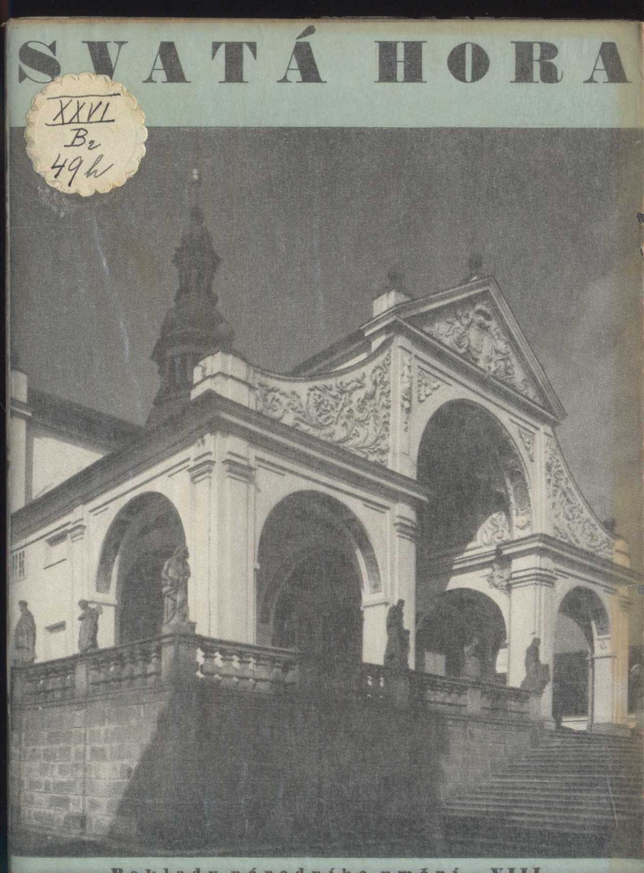 Title information Svatá Hora / Alžběta Birnbaumová Personal name Birnbaumová, Alžběta, 1898-1967 (Author) Další autoři Sdružení přátel baroka (Other) Umělecká beseda (spolek, Praha) (Other) Vyšehrad (nakladatelství) (Publisher) Č.A.T., Českomoravské akciové tiskařské a vydavatelské podniky (Praha) (Printer) Publication Praha : Vyšehrad, 1940 Manufacture (Č.A.T., Českomoravské akciové tiskařské a vydavatelské podniky) Scope [16] s., [6] l. obr. příl. : il. ISBN brož. Edition Poklady národního umění sv. 8
