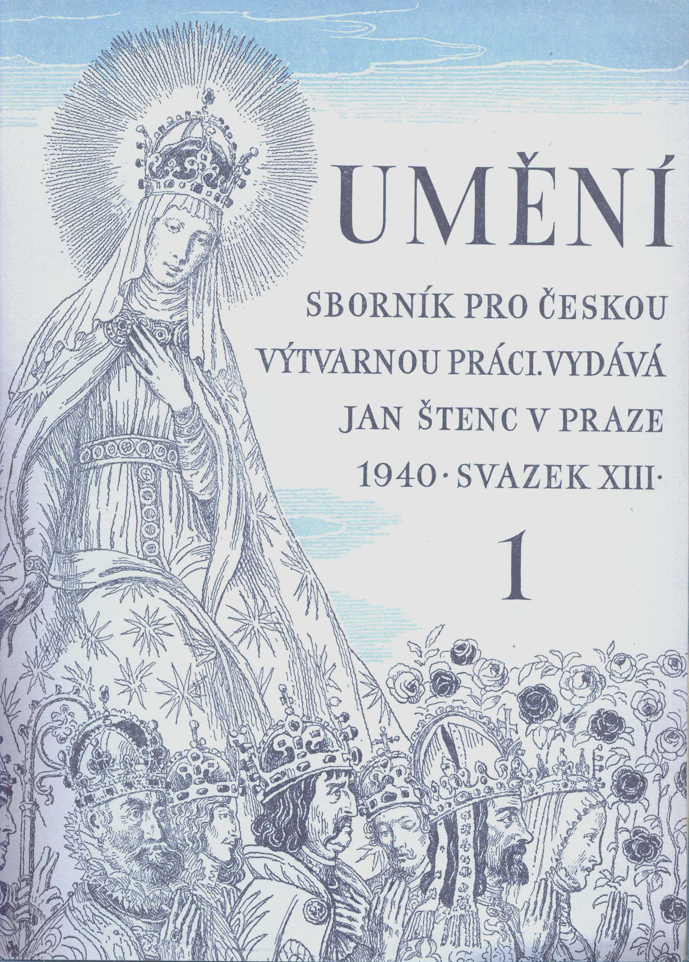Title information Umění : sborník pro českou výtvarnou práci Další autoři Štenc, Jan, 1871-1947 (Publishing director) (Publisher) Corporation Jan Štenc (nakladatelství, tiskárna) (Publisher) Roč., číslo Ročník 13, číslo 1-10, 1940/1941 Publication Praha : Jan Štenc, 1940-1941 Scope 432 stran : fotografie, faksimile ; 27 cm Country Czech Republic Language Czech Note Barevná zdobená obálka Maxe Švabinského. - Černobílé ilustrace. - Faksimile. - Obsahuje černobílé přílohy zahrnuté do paginace.