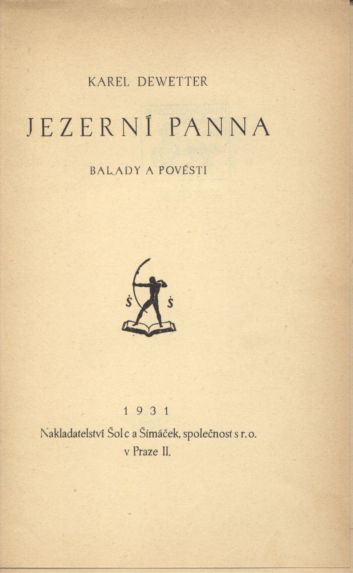 Title information Jezerní panna : balady a pověsti / Karel Dewetter Personal name Dewetter, Karel, 1882-1962 (Author) Další autoři Nakladatelství Šolc a Šimáček (Publisher) Neuber, Pour a spol. (tiskárna) (Printer) Další var.názvy Balady a pověsti Publication V Praze : Nakladatelství Šolc a Šimáček, společnost s r. o., 1931 Manufacture (Grafické závody Neuber, Pour & spol.) Scope 82 s. ; 20 cm ISBN brož. Country Czech Republic Language Czech Note Dvoubarevná obálka. - Titulní list s nakladatelskou značkou. - Obsah. - Tiráž. - Spisy K. Dewettera.