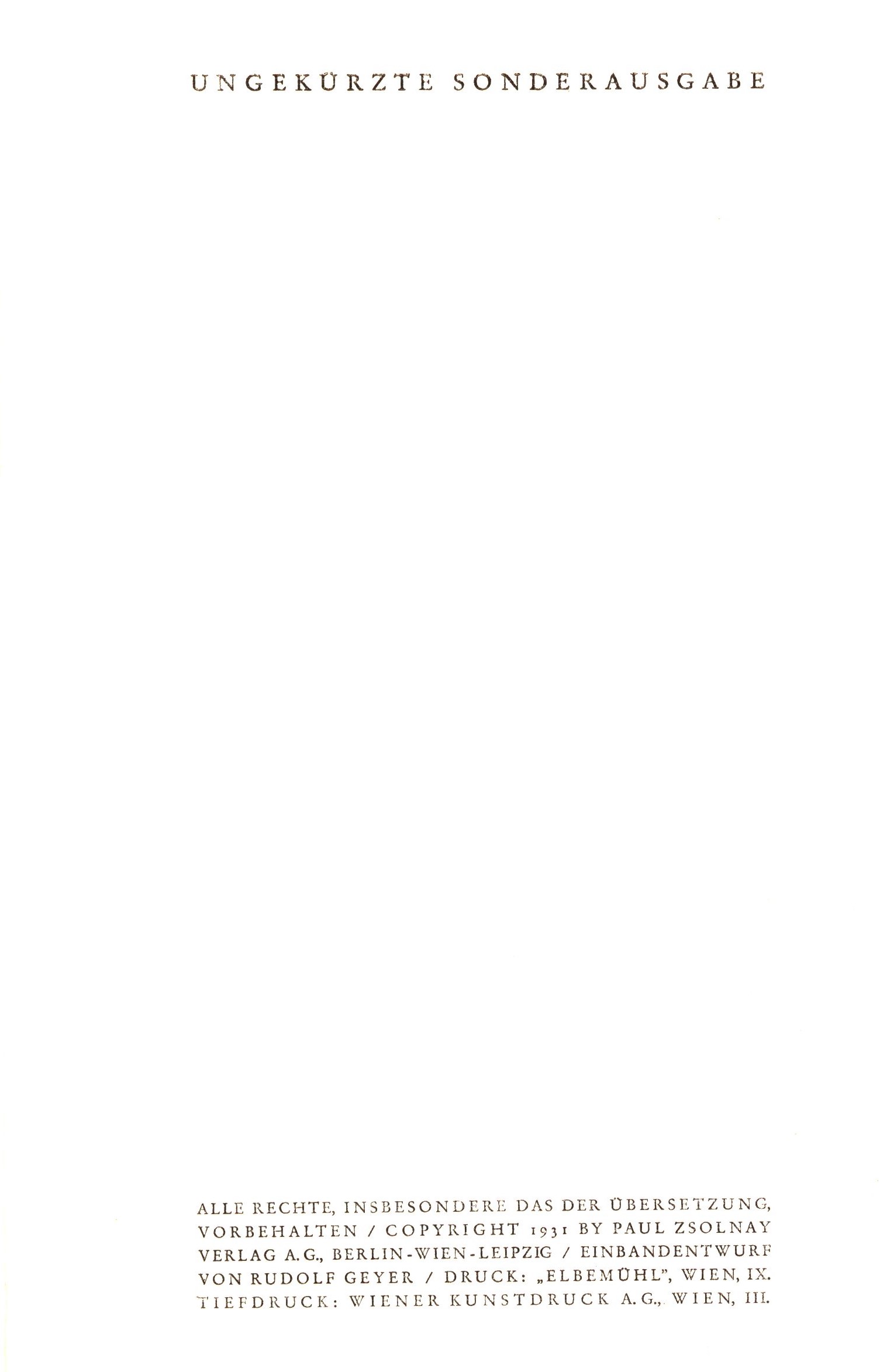 PublicationBerlin ; Wien ; Leipzig : Paul Zsolnay Verlag, [1931]