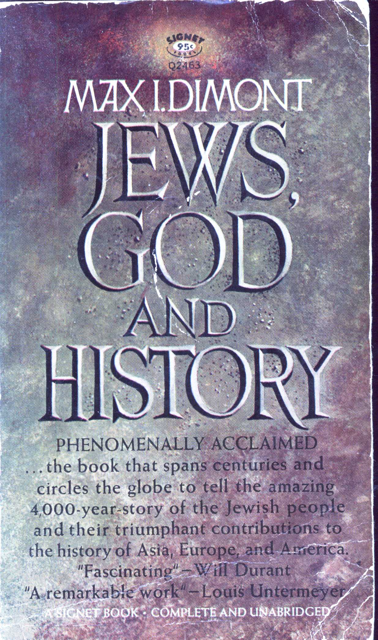 Title information Jews, God and History / Max I. Dimont Personal name Dimont, Max I., 1912-1992 (Author) Publication New York : New American Library, 1962 Scope xi, 472 s. ISBN brož. Edition Signet Q 2463