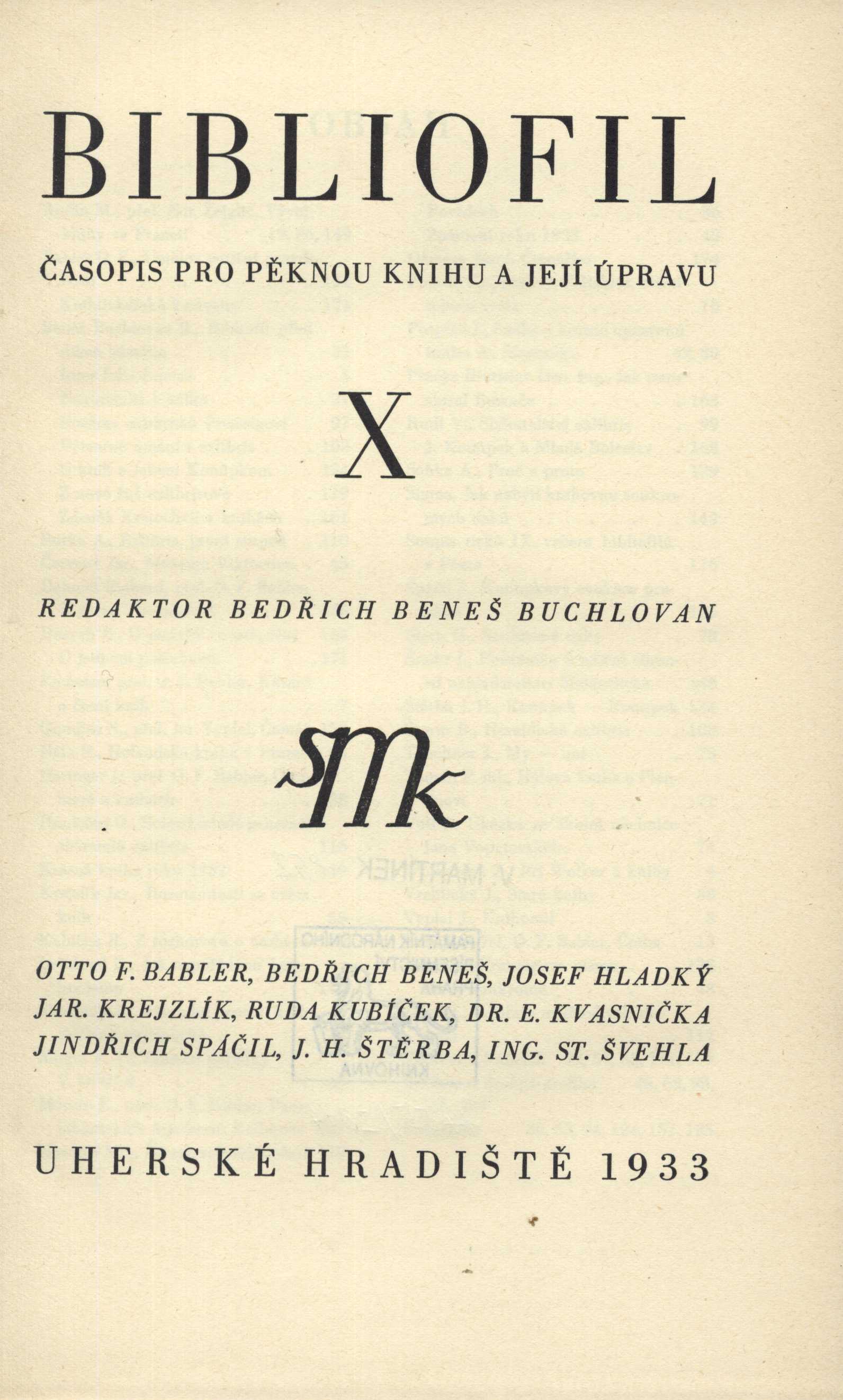AnnotationVýznamný moravský bibliofilský časopis. Vycházely v něm kratší studie o knižní kultuře a soudobých českých úpravcích a knižních graficích. Časopis byl bohatě ilustrován a obsahoval rovněž grafické přílohy.