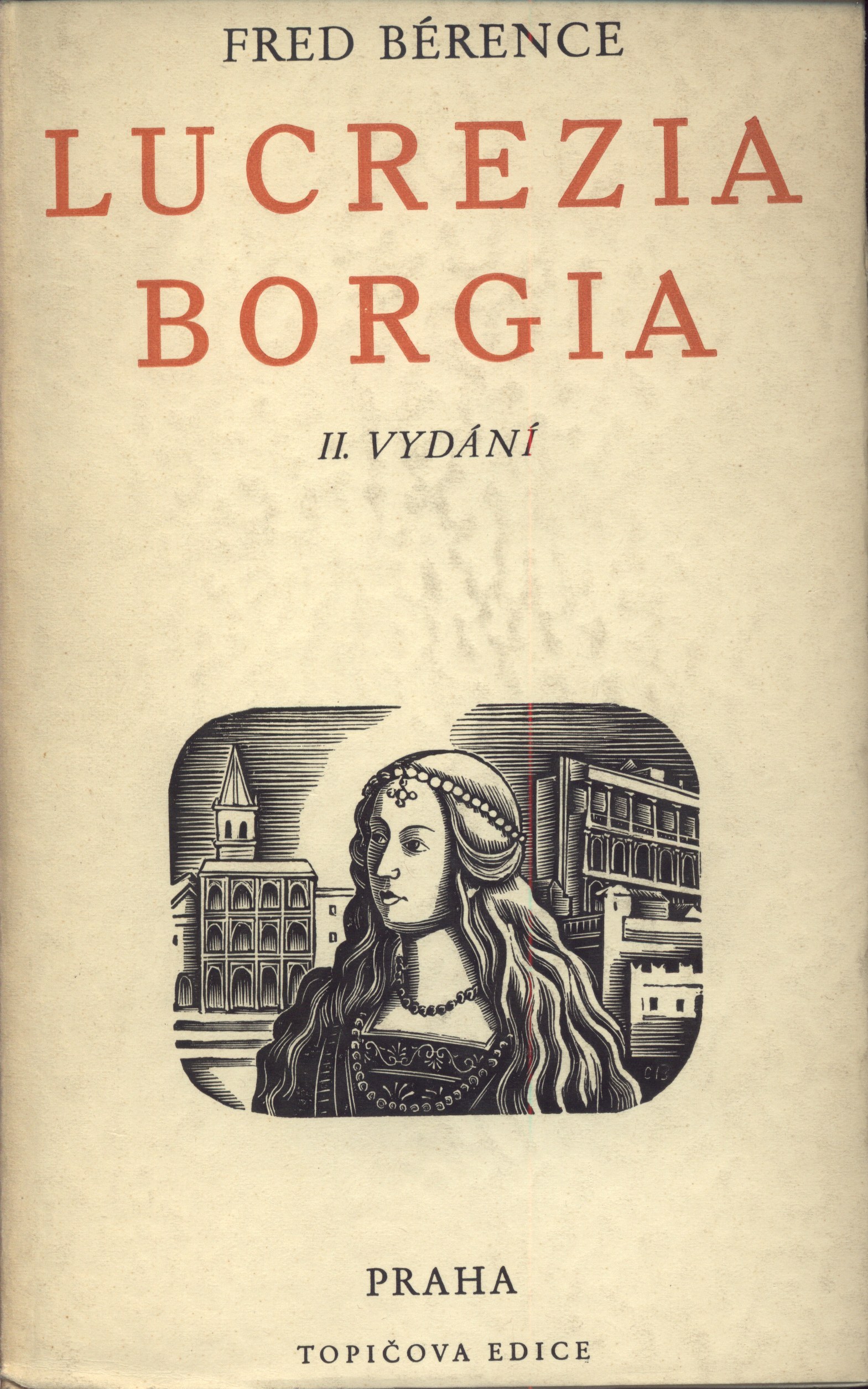 Title information Lucrezia Borgia / Fred Bérence ; z francouzštiny přeložil Václav Renč ; [dřevoryt a grafická úprava Cyrila Boudy] Personal name Bérence, Fred, 1889-1977 (Author) Další autoři Renč, Václav, 1911-1973 (Translator) Bouda, Cyril, 1901-1984 (Illustrator) (Book designer) Corporation Topičova edice (nakladatelství) (Publisher) Osvěta (tiskárna) (Printer) Edition statement Druhé vydání Publication V Praze : Topičova edice, 1940 Manufacture Osvěta, společnost s o. r.) Scope 358 s. : il. ; 22 cm ISBN (váz.) Edition Topičovy Bílé knihy : zrcadlo literárního světa / řídí Josef Knap