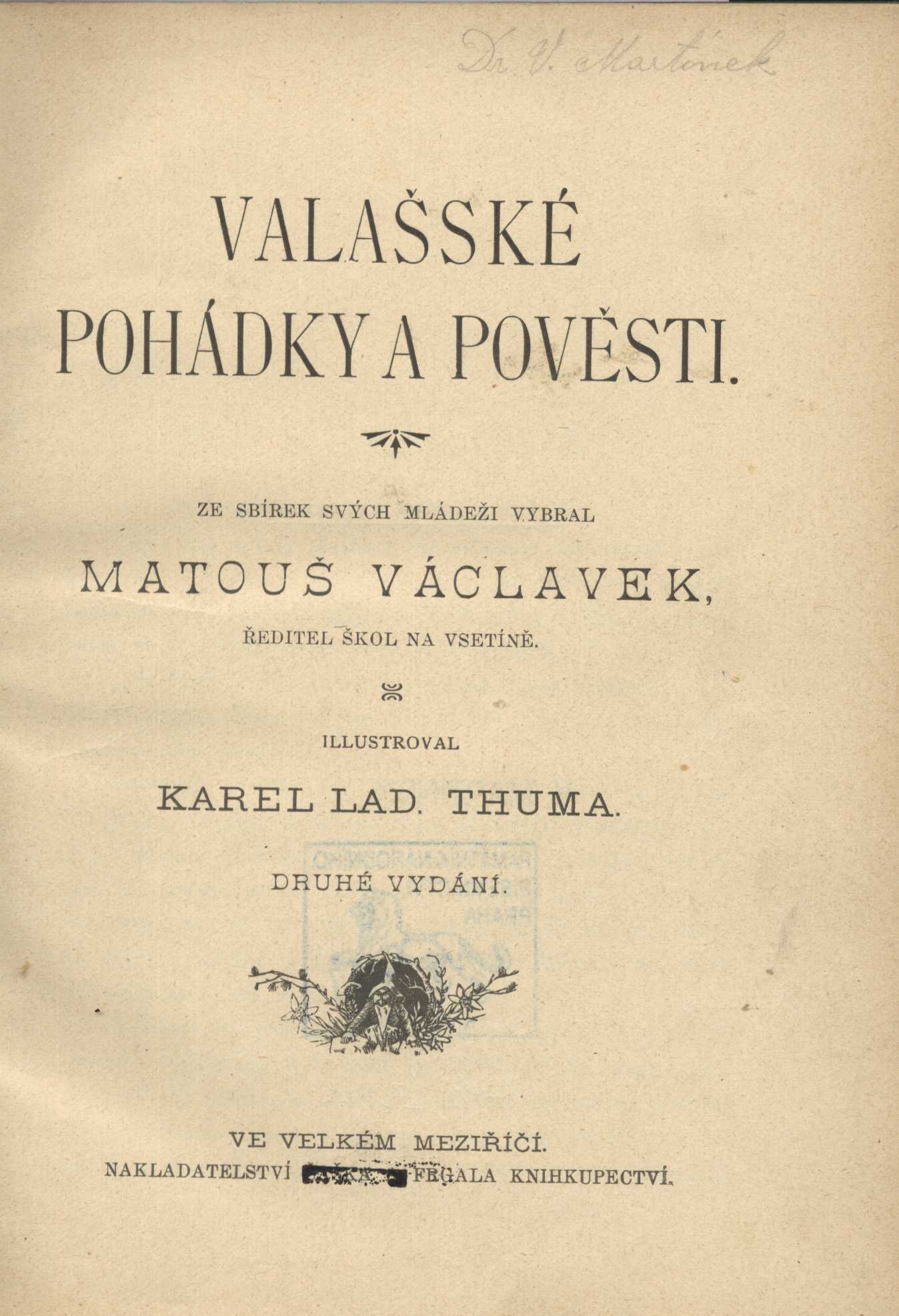1. Title informationValašské pohádky a pověsti / ze sbírek svých mládeži vybral Matouš Václavek ; illustroval Karel Lad. Thuma. [Čásť I.]