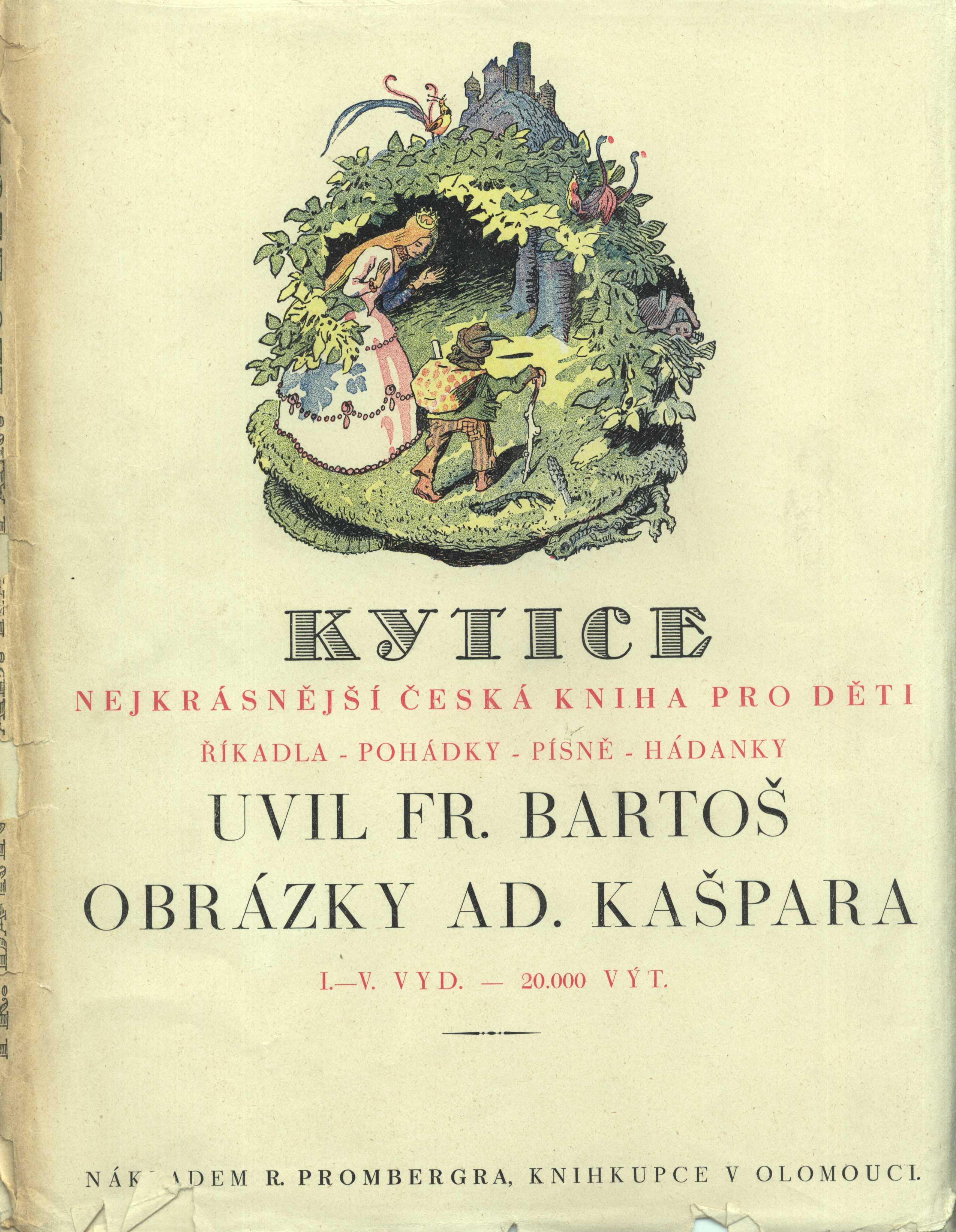 Title information Kytice : z lidového básnictva našim dětem uvil / František Bartoš ; kresby Adolfa Kašpara Personal name Bartoš, František, 1837-1906 (Author) Další autoři Kašpar, Adolf, 1877-1934 (Illustrator) Corporation R. Promberger (nakladatelství) (Publisher) Kramář a Procházka (firma) (Printer) Edition statement 5. vyd. Publication V Olomouci : Nákladem R. Prombergra, 1929 Manufacture (Tiskem národní knihtiskárny Kramář a Procházka) Scope 158 s. : il. ISBN (váz.) Country Czech Republic Language Czech Note Barevné ilustrace na přebalu, vazbě i titulním listu. - Na zadní straně přebalu nakladatelská upoutávka. - Barevné ilustrace v textu i celostránkové.