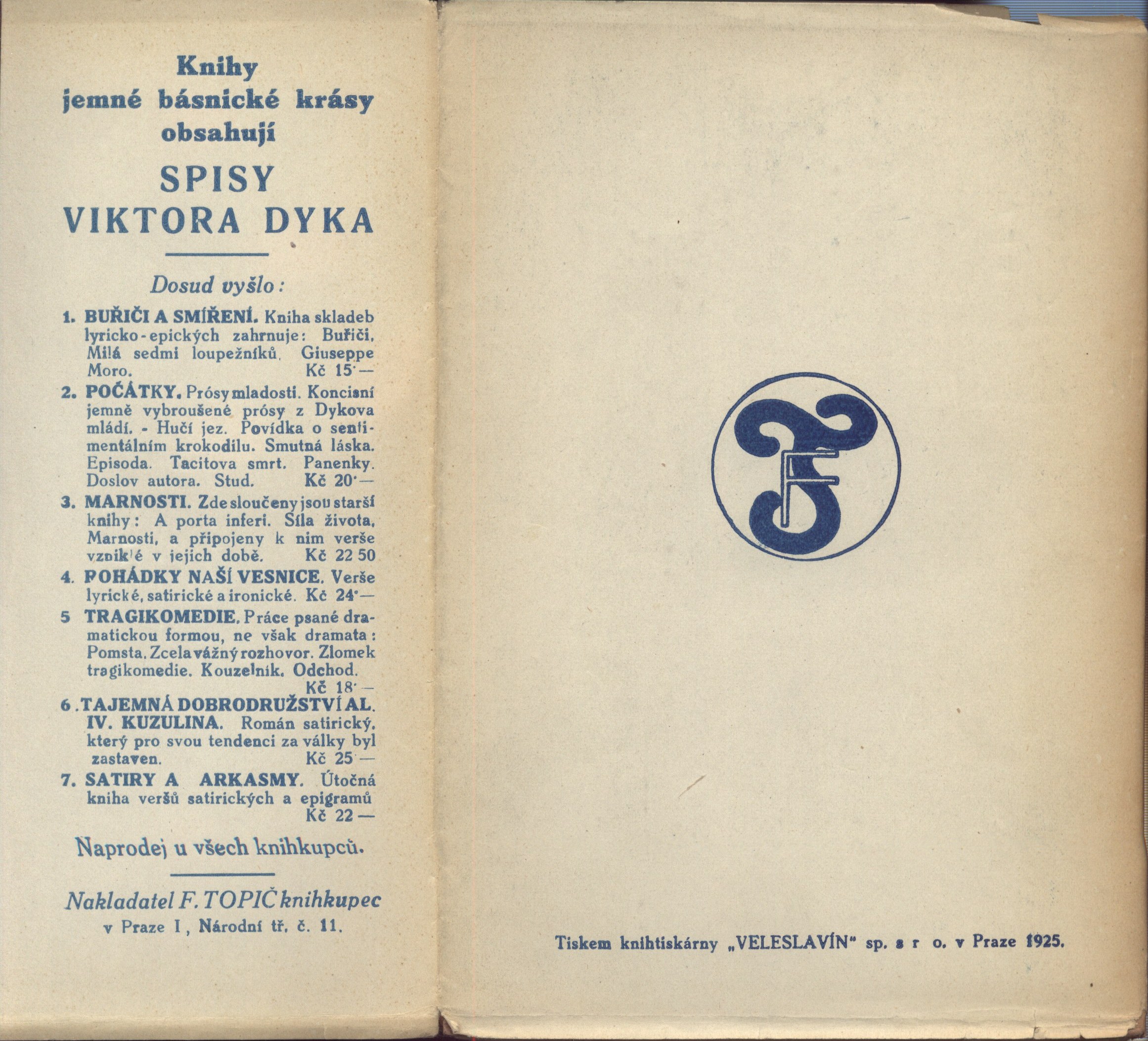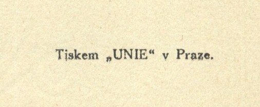 Obálka a přebal odlišně tiskárna: "Tiskem knihtiskárny Veleslavín sp. s r. o."