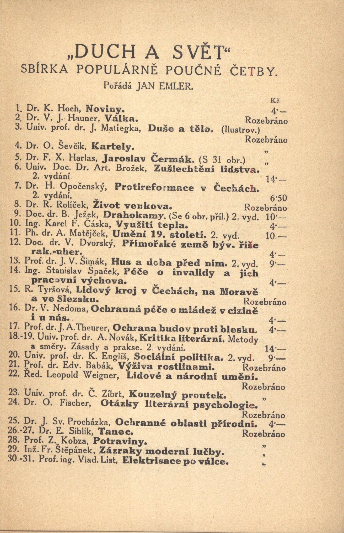 Duch a svět (F. Topič)Country Czech Republic Language Czech Note Typizovaný přebal. - Na záložkách nakladatelské upoutávky. - Obálka brože. - Zdobená přídeští obálky. - Seznam edice. - Edice proti titulu, ve zdobných rámcích. - Tiskárna. - Poznámky pod čarou. - Literatura. - Obsah. - Koncové viněty. - Bez tiráže. - Na zadní straně obálek opakující se nakladatelská značka.