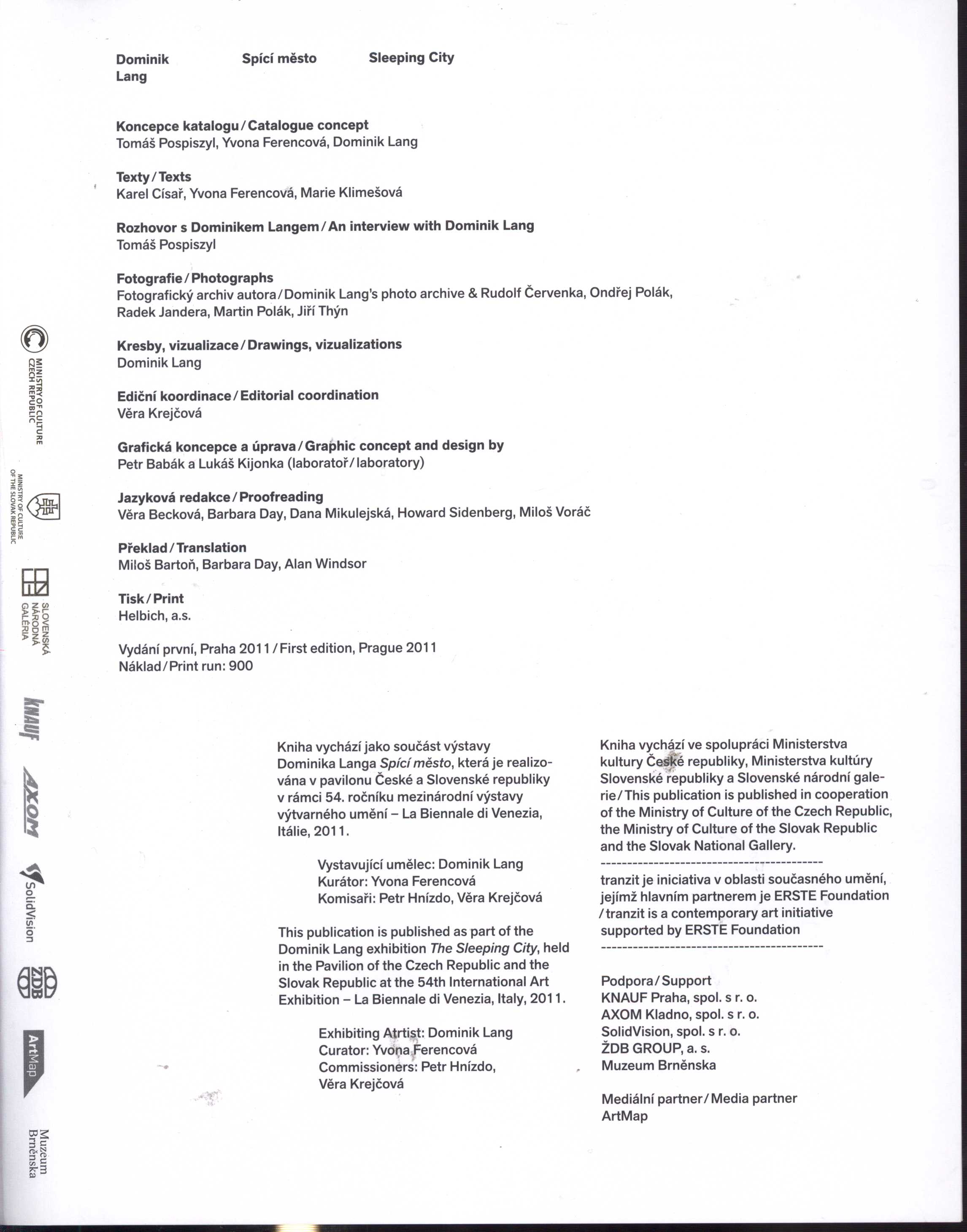 Kniha vychází jako součást stejnojmenné výstavy realizované 4.9.-27.11.2011 v pavilonu České a Slovenské republiky v rámci 54. roč. mezinárodní výstavy výtvarného umění - La Biennale di Venezia, Itálie