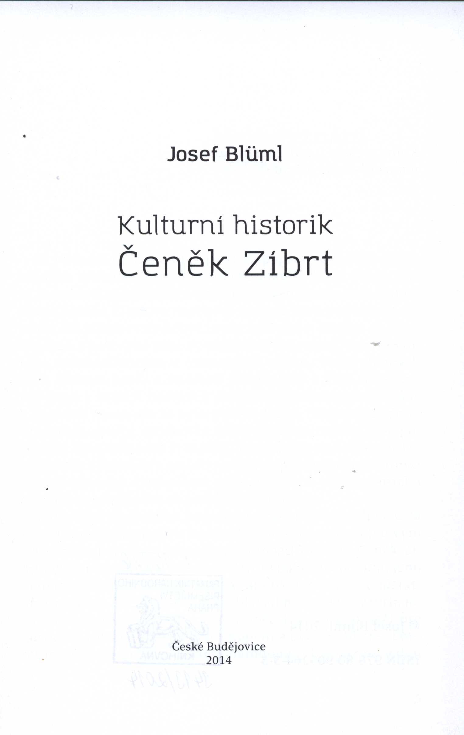 Title information Kulturní historik Čeněk Zíbrt / Josef Blüml ; [grafická úprava a sazba Dušan Růžička] Personal name Blüml, Josef, 1948-2020 (Author) Další autoři Růžička, Dušan (Book designer) (Compositor) Corporation Společnost pro kulturní dějiny, o. s. (spolek) (Publisher) (České Budějovice, Česko) Nová tiskárna Pelhřimov (tiskárna) (Publisher) Edition statement Vyd. 1. Publication České Budějovice : Společnost pro kulturní dějiny ve spolupráci s Novou tiskárnou Pelhřimov, 2014 Manufacture Nová tiskárna Pelhřimov) Scope 207 s. : il., portréty ISBN 978-80-905264-3-3 (váz.) Country Czech Republic Language Czech Note Na přebalu, vazbě a frontispisu portrét Č. Zíbrta. - Černobílé fotografie. - Obsahuje bibliografické odkazy. - Ediční poznámka. - Obsah.