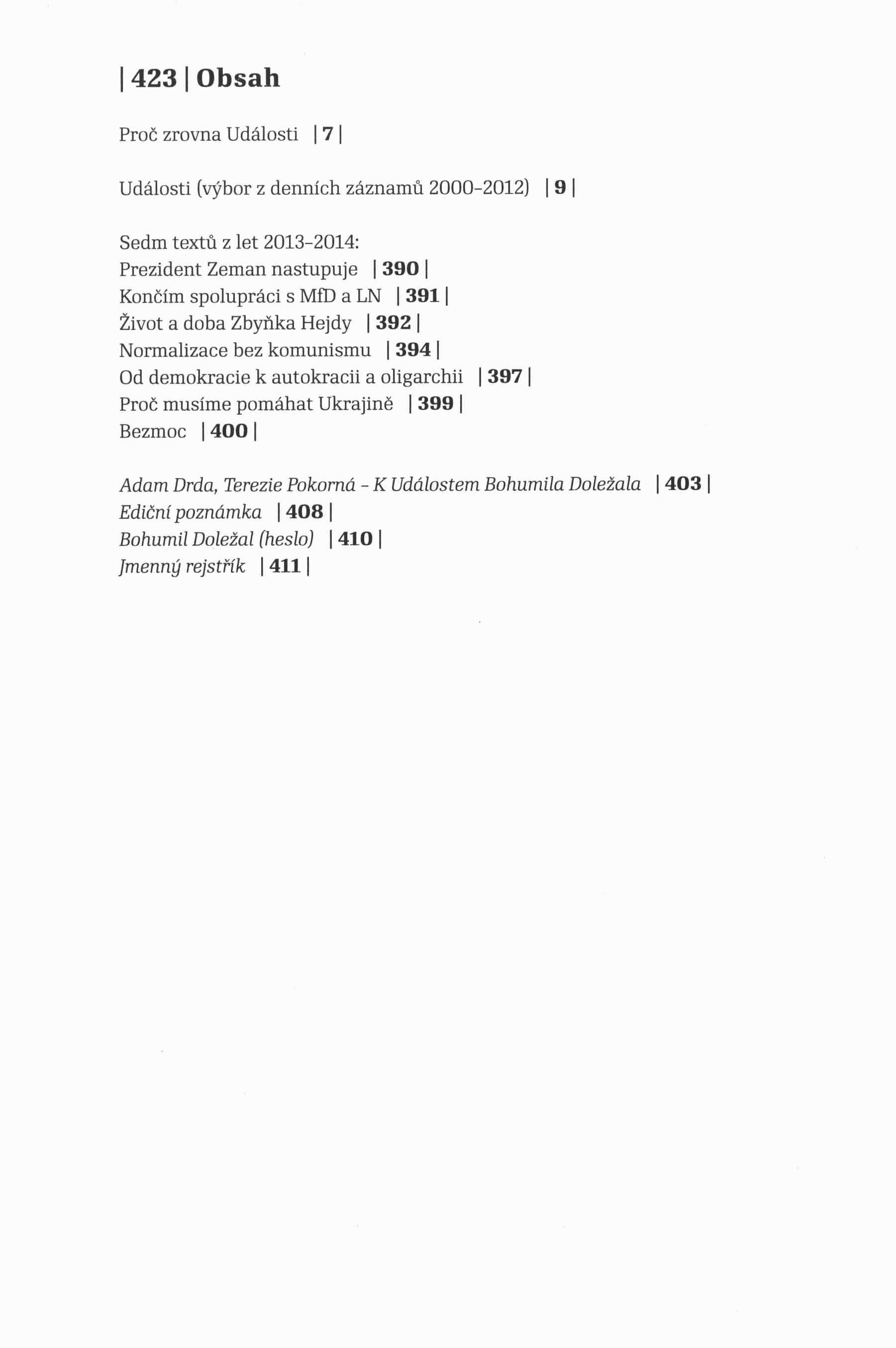 Edice Revolver Revue, (Revolver Revue)Country Czech Republic Language Czech Note Typografická vazba. - Frontispis. - Titulní list. - Doslov: "K Událostem Bohumila Doležala" (A. Drda, T. Pokorná). - Ediční poznámka. - Bohumil Doležal (heslo). - Jmenný rejstřík. - Edice nad tiráží.