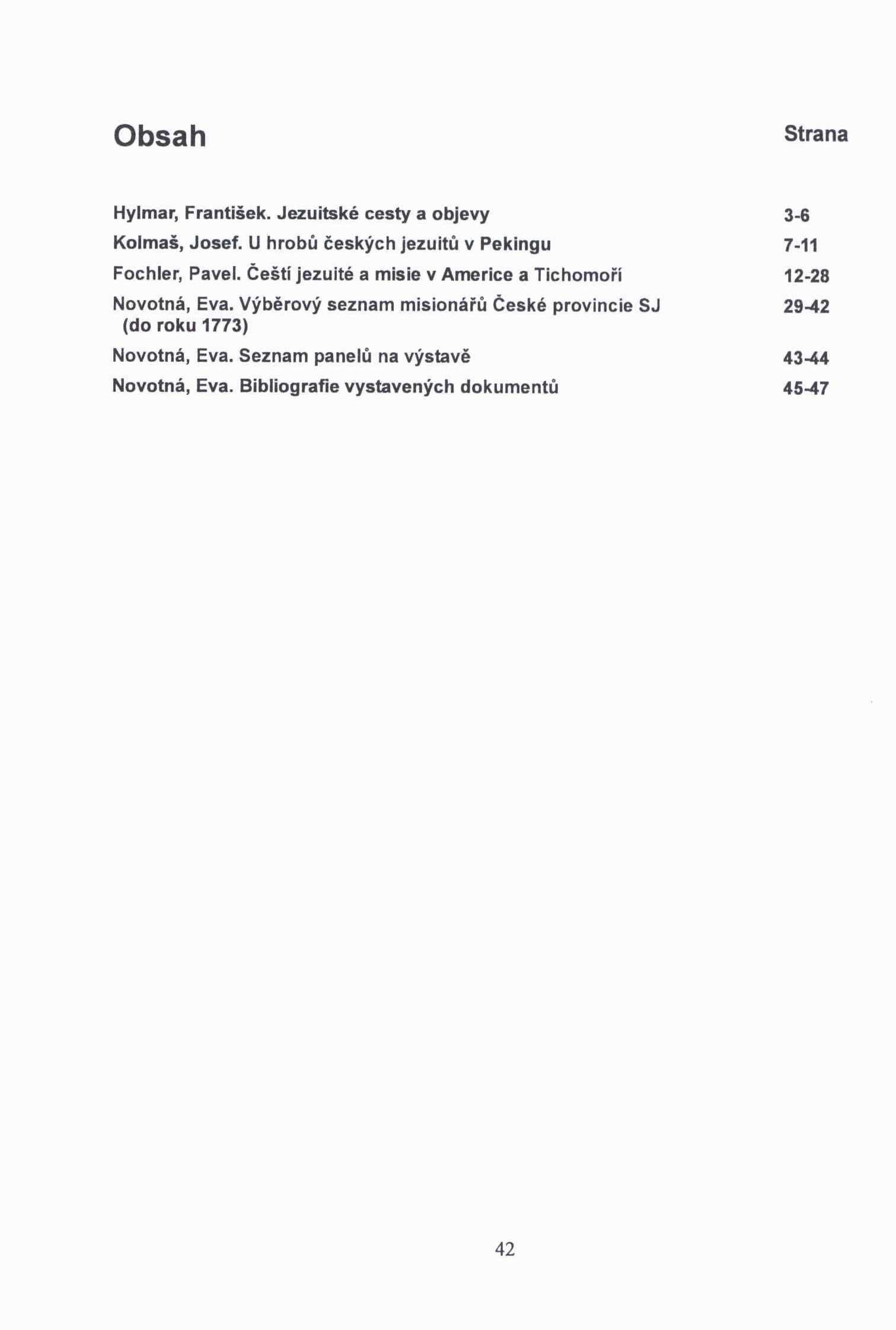 Title information Čeští jezuité - cestovatelé a objevitelé : katalog výstavy k 450. výročí příchodu jezuitů do Prahy : Praha, 21. 6. 2006 - 22. 9. 2006 / uspořádaly Geografická knihovna PřF UK v Praze, Česká provincie S.J. ; [sestavila Eva Novotná] Main entry-action Čeští jezuité, cestovatelé a objevitelé (výstava) (2006 : Praha, Česko) Další autoři Novotná, Eva, 1965- (Compiler) Corporation Univerzita Karlova. Přírodovědecká fakulta (Publisher) Jezuité. Česká provincie Publication Praha : Geografická knihovna PřF UK, 2006 Scope 42 s., [4] s. obr. příl. : barev. il. ISBN 80-86561-98-4 (brož.) 978-80-86561-98-1 (v knize neuvedeno : brož.) Country Czech Republic Language Czech Note Nad názvem: 150 let geografie na UK v Praze. - Dotisk z roku 2014. - Obsahuje bibliografie. - Obsah. - Obrazová příloha (barevné fotografie).