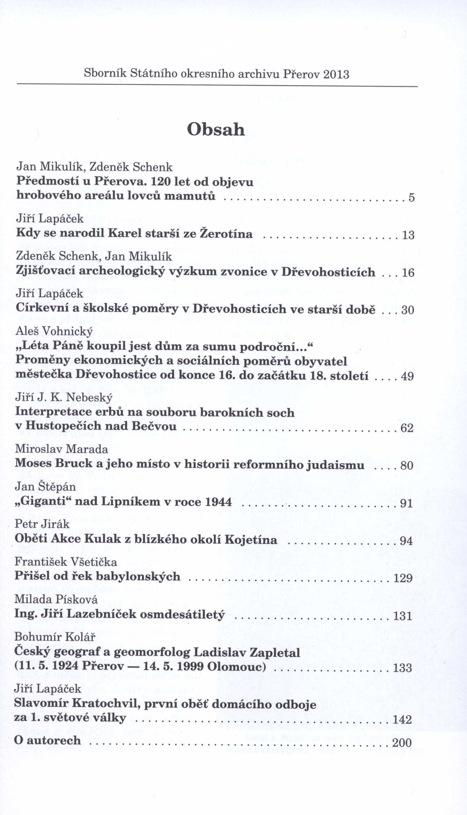 Document kind PERIODIKA - Svázaný ročník periodika Obálkový název Státní okresní archiv Přerov 2014 Název na hřbetu Sborník Státního okresního archivu Přerov 2014 Periodicita 1x ročně Parent Státní okresní archiv Přerov. Sborník Státního okresního archivu Přerov Personal subjects ze Žerotína, Karel, starší, 1564-1636 - moravský šlechtic, politik a diplomat * Lazebníček, Jiří, 1934-2017 - Ing., dendrolog a mykolog * Zapletal, Ladislav, 1924-1999 - RNDr., CSc., geograf a geomorfolog, publikace z oboru Keywords přerovský kraj * Přerov * historie kraje * archivní materiály * archeologické nálezy * osobnosti kraje * regionální sborník UDC 323.28 * (=411.16) * 94(473) * (082.2) * (066) Call number Track No. Location Info C12c 4348 0108/2015 Fond