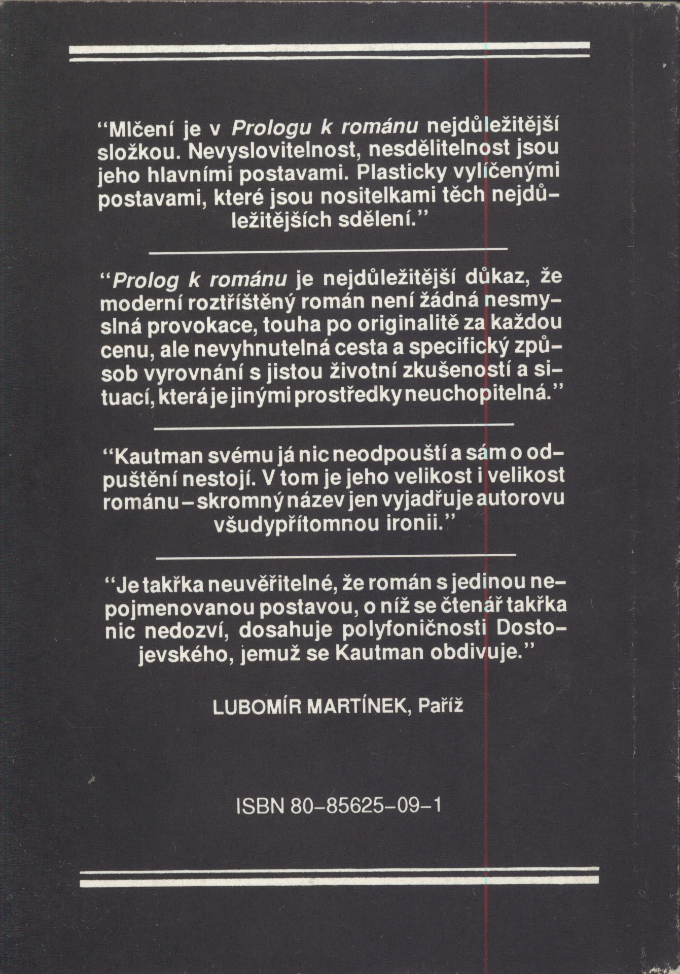 Sign. JVladislav 890 - dedikace ''Janu Vladislavovi co kniha, to vzpomínka na společnou práci v samizdatu František Kautman květen 1993''.