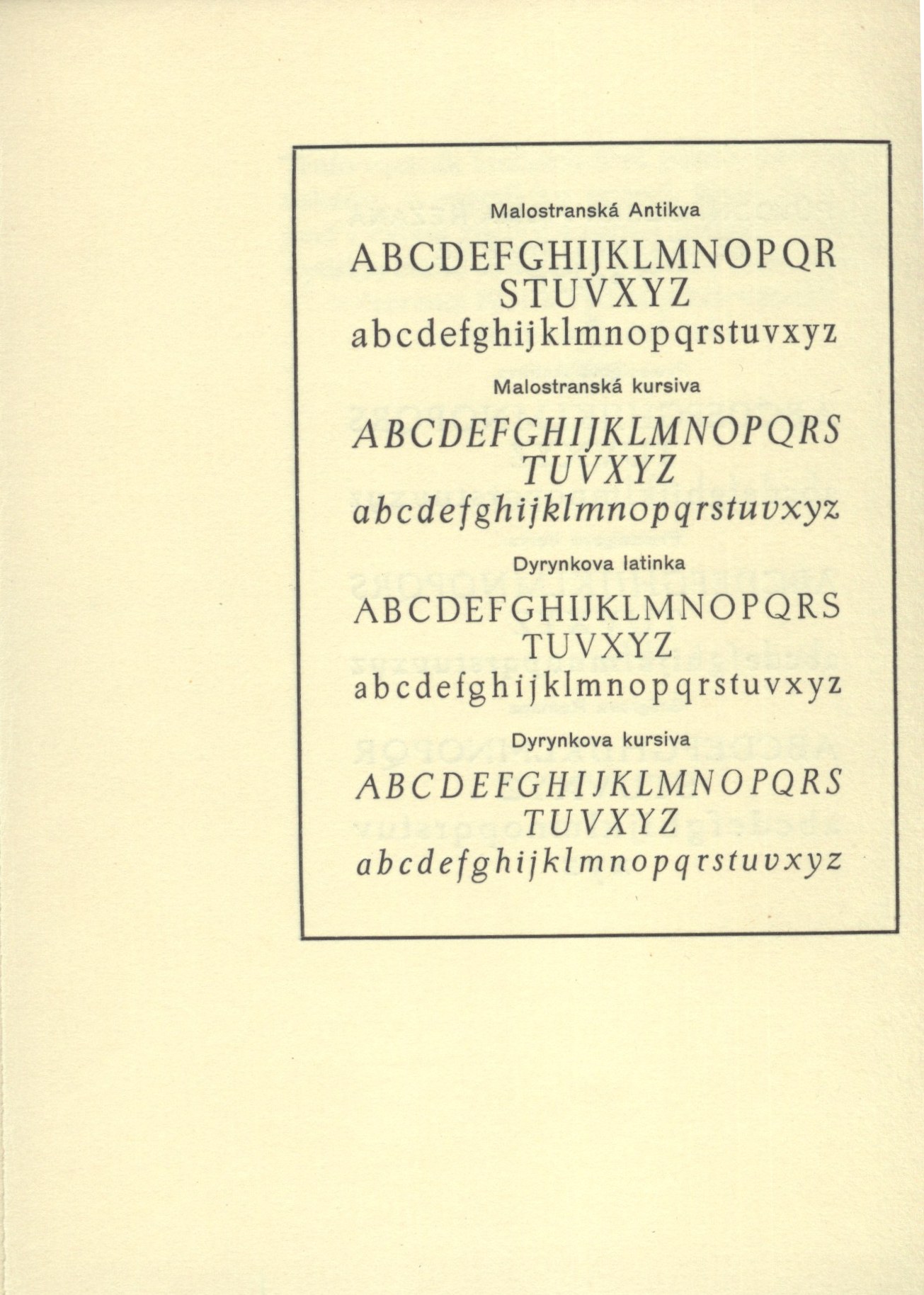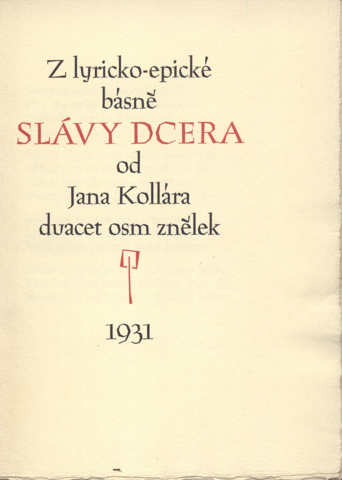 Title information Z lyricko-epické básně Slávy dcera od Jana Kollára dvacet osm znělek : [vzorník knižních řezů písmových / typograficky upravil Karel Dyrynk, jenž i vybral znělky a napsal dodatek] Personal name Kollár, Ján, 1793-1852 (Author) Další autoři Dyrynk, Karel, 1876-1949 (Compiler) (Typographer) (Author of introduction) Corporation Státní tiskárna v Praze (Publisher) Další var.názvy Slávy dcera Vzorník knižních řezů písmových Státní tiskárny Publication V Praze : Státní tiskárna, 1931 Manufacture (Státní tiskárna) Scope 32, [20] s. ; 17 cm ISBN (váz.) Country Czech Republic Language Czech Note Papírová vazba se štítkem na hřbetu. - Značka tiskárny. - Titulní list. - Nestránkovaný dodatek. - Tiráž s číslem výtisku. - Ukázka písem. - Kartonové pouzdro.