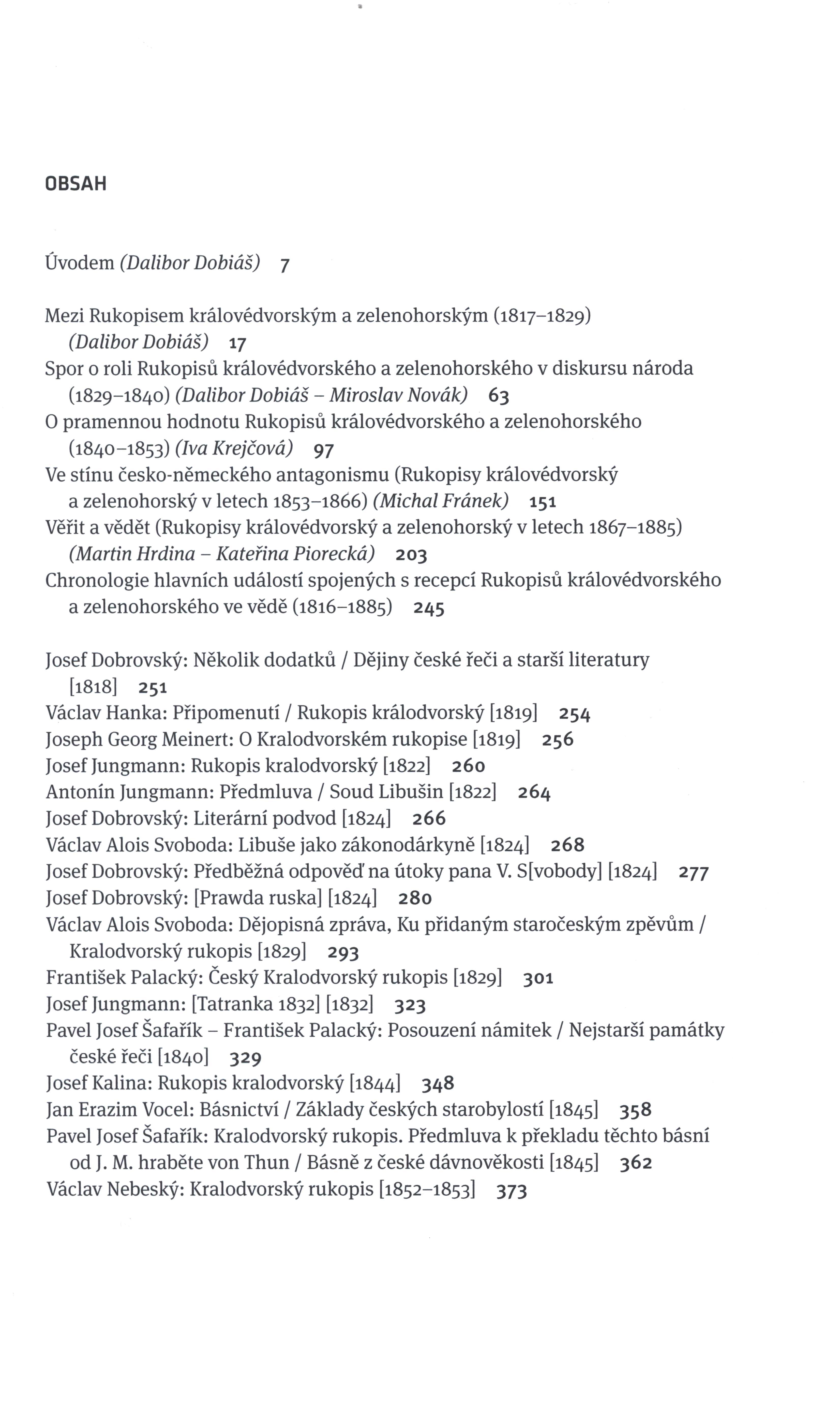 Title information Rukopisy královédvorský a zelenohorský a česká věda (1817-1885) / Dalibor Dobiáš ... [et al.] ; [přebal a grafickou úpravu navrhla Michaela Blažejová] Personal name Dobiáš, Dalibor, 1977- (Author) (Author of introduction) Další autoři Fránek, Michal, 1980- (Author) Hrdina, Martin, 1980- (Author) Krejčová, Iva, 1980-2023 (Author) Piorecká, Kateřina, 1976- (Author) Blažejová, Michaela, 1966- (Bookjacket designer) (Book designer) Corporation Academia (nakladatelství) (Publisher) Těšínská tiskárna (Printer) Edition statement Vyd. 1. Publication Praha : Academia, 2014 Manufacture Těšínská tiskárna, a. s.) Scope 934 s. : il., portréty, faksim. ; 25 cm ISBN 978-80-200-2421-3 (vázáno) Edition Literární řada
