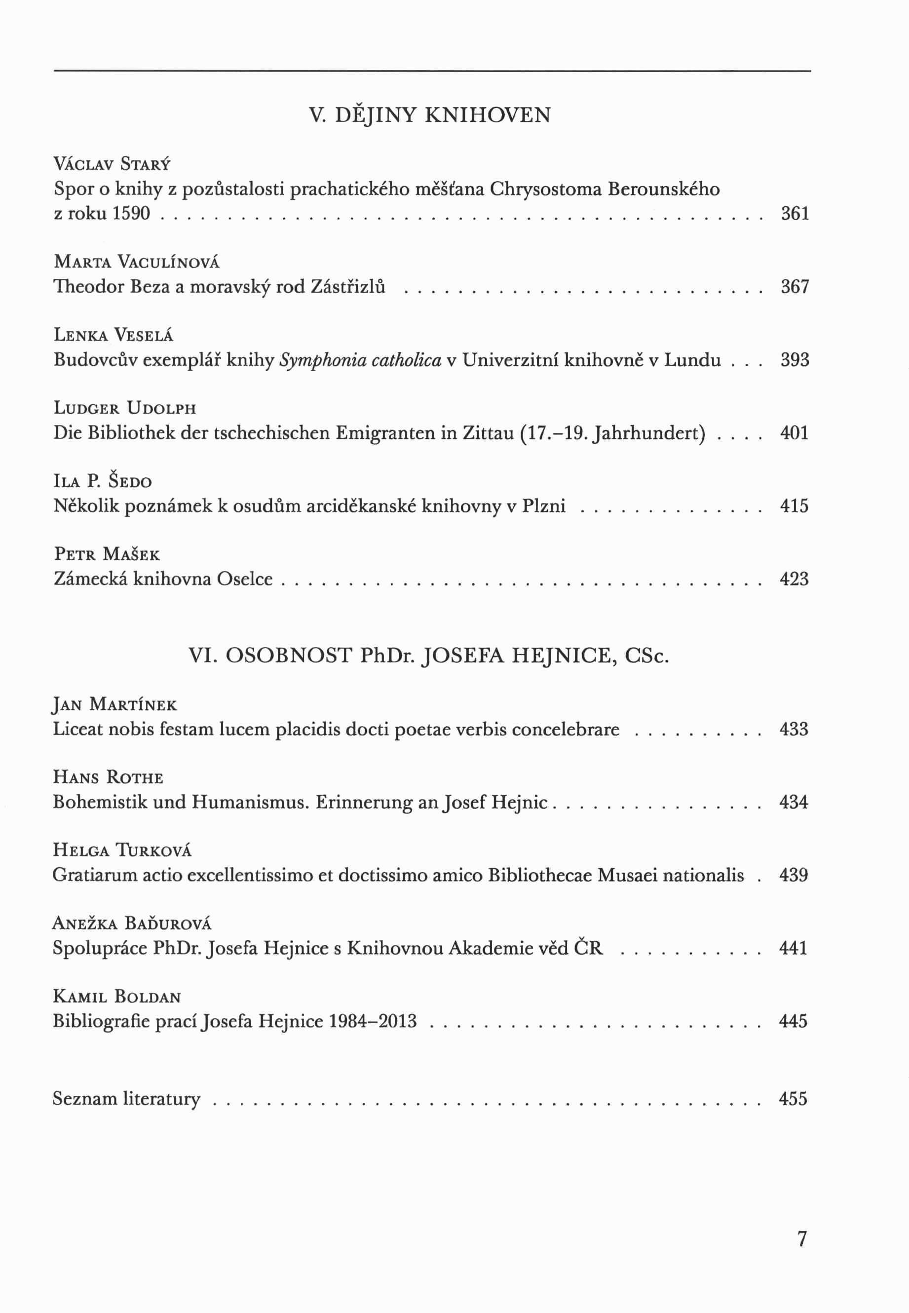 Title information Humanismus v rozmanitosti pohledů : farrago festiva Iosepho Hejnic nonagenario oblata / k vydání připravili Anežka Baďurová ... [et al.] ; [grafická úprava, sazba, obálka David Jůna] Další autoři Baďurová, Anežka, 1942- (Editor) Boldan, Kamil, 1966- (Editor) Jelínková, Andrea, 1972- (Editor) Vaculínová, Marta, 1969- (Editor) Jůna, David (Book designer) (Compositor) (Bookjacket designer) Edition statement 1. vyd. Publication Praha : Knihovna AV ČR, 2014 Scope 488 s. : il. (některé barev.), faksim., 1 erb ISBN 978-80-86675-27-5 (brož.) Country Czech Republic Language Czech * English * German * Latin Note Zdobená barevná obálka. - Frontispis. - Částečně anglický, latinský a německý text. - Obsah. - Barevné a černobílé fotografie, ilustrace a faksimile s popiskami. - Anglická resumé. - Tabulky. - Obsahuje bibliografie a bibliografické odkazy. - Nakladatelská značka na zadní straně obálky.