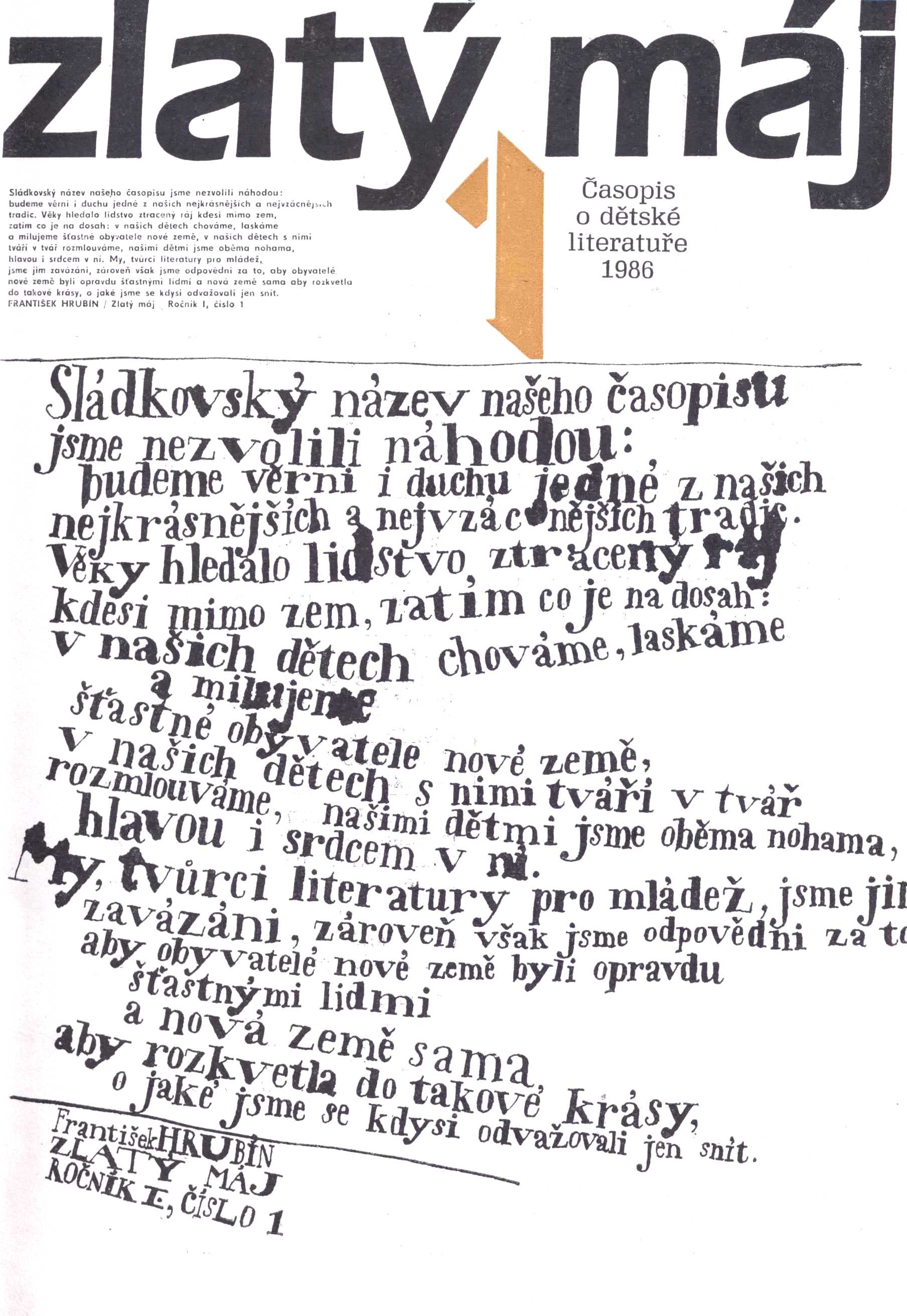 Title information Zlatý máj : časopis o dětské literatuře Další autoři Lapáček, Jiří (Publishing director) Sliacky, Ondrej, 1941- (Editor) Kovařík, Jindřich, 1928-2019 (Typographer) Corporation Nakladatelství Albatros (Publisher) Mladé letá (firma) (Publisher) Roč., číslo Ročník 30, číslo 1-10, 1986 Publication Praha : Albatros : Mladé letá, 1986 Scope 635 stran : ilustrace, fotografie, portréty, faksimile ; 24 cm ISSN 0044-4871 Country Czech Republic Language Czech * Slovak Note Čb. ilustrace, fotografie a portréty. - Faksimile. - V tiráži uváděno rovněž průběžné číslování od začátku vydávání. - Český a slovenský text. - Cizojazyčná resumé.