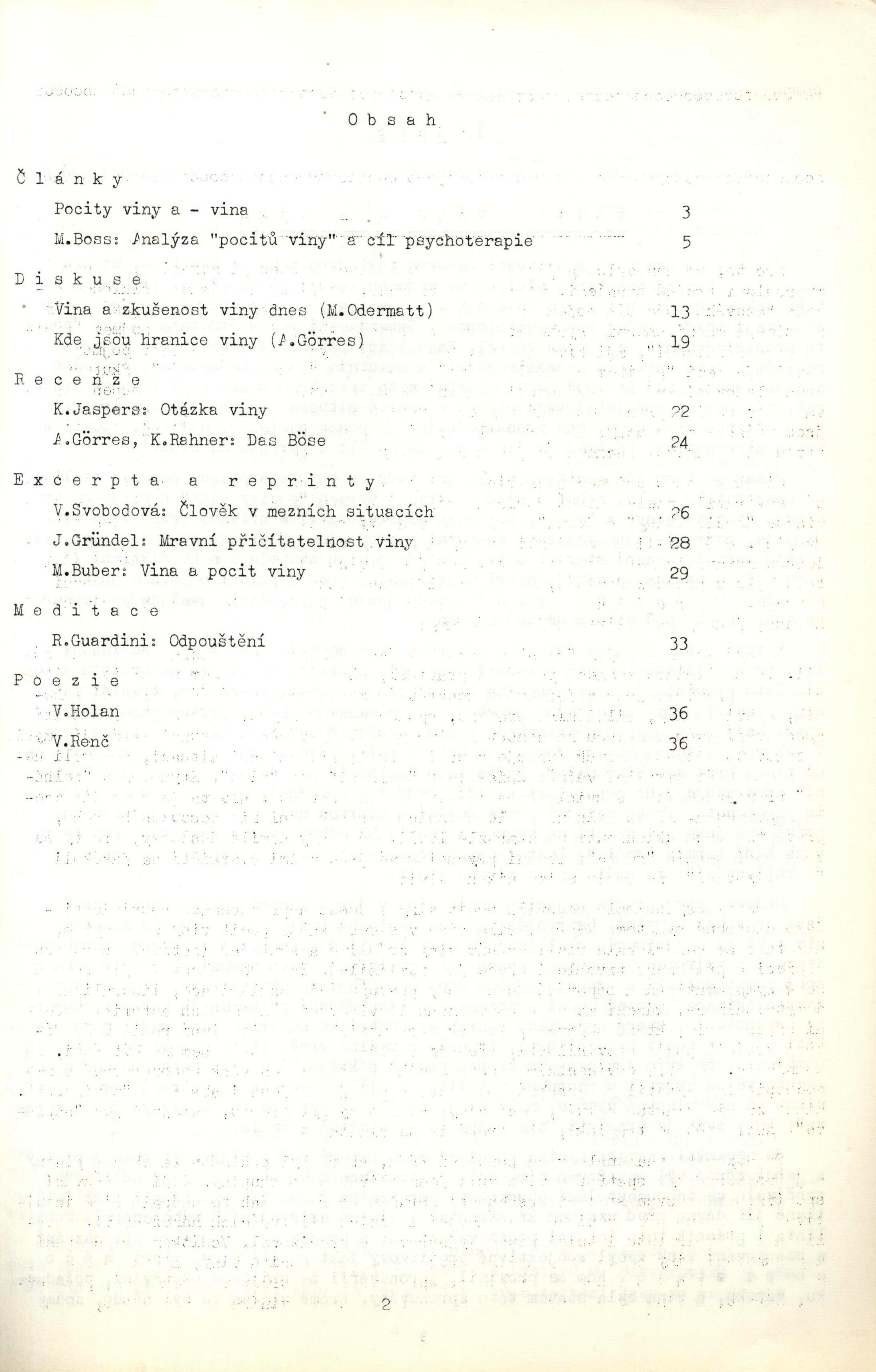 Title information Vina Další autoři Boss, Medard, 1903-1990 (Author of introduction) Odermatt, Martin (Author of introduction) Görres, Albert, 1918-1996 (Author of introduction) Jaspers, Karl, 1883-1969 (Author of introduction) Rahner, Karl, 1904-1984 (Author of introduction) Svobodová, Věra, 1951- (Author of introduction) Gründel, Johannes, 1929-2015 (Author of introduction) Buber, Martin, 1878-1965 (Author of introduction) Guardini, Romano, 1885-1968 (Author of introduction) Holan, Vladimír, 1905-1980 (Author of introduction) Renč, Václav, 1911-1973 (Author of introduction) Publication S.l. : s.n., [19--] Scope 36 s. Country Czech Republic Language Czech Note Samizdat. - Barevná obálka s drobným znakem a názvem Vina. - Pocity viny a - vina. - Články, diskuse, recenze, excerpta a reprinty, meditace, poezie. - Strojopis.