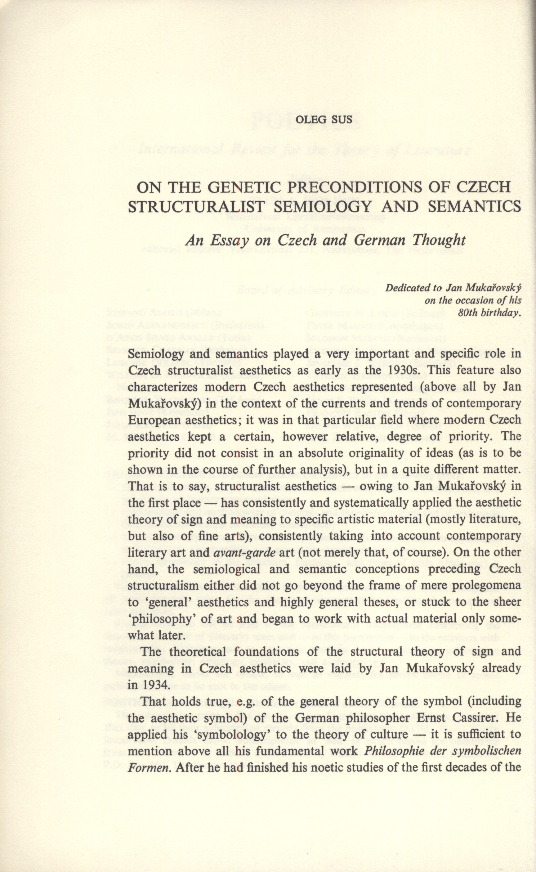 Separát z: Poetics : International Review for the Theory of Literature, 4, to honour the 80th birthday of Jan Mukařovský, 1972