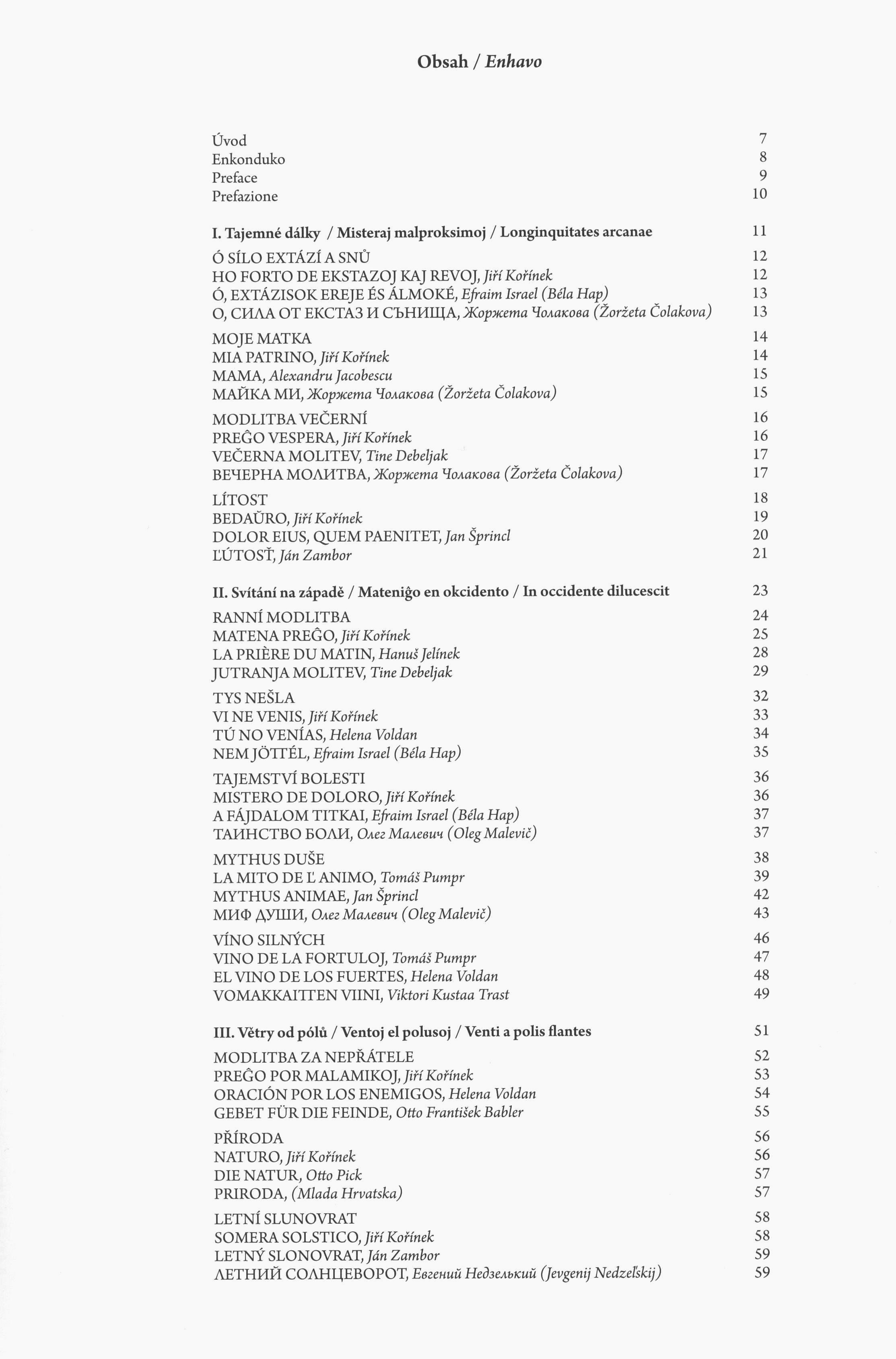 Language noteBásně jsou v češtině, souběžně v esperantu a dalších 18 jazycích; souběžný anglický, esperatnský a italský úvod.
