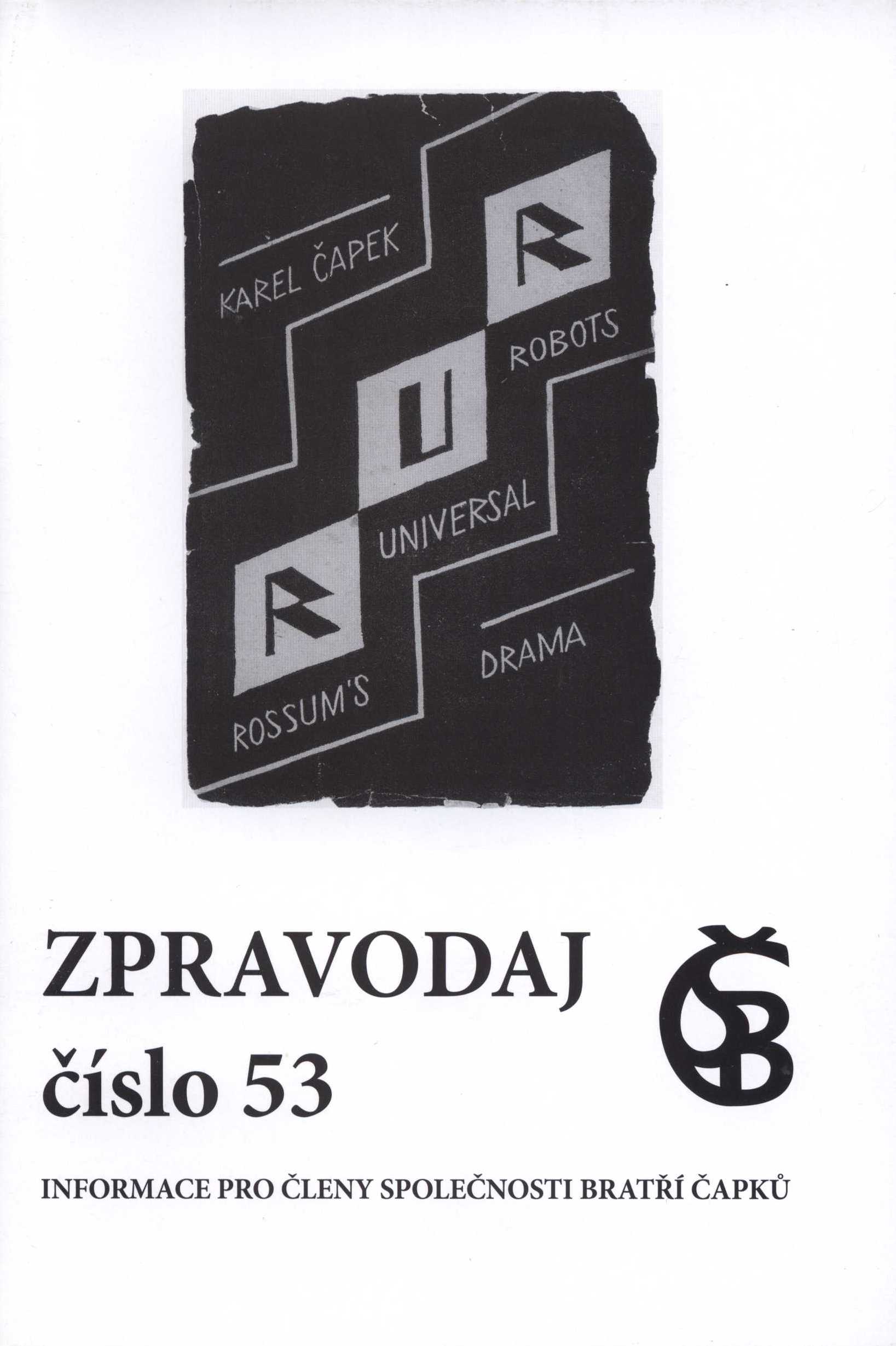 Title information Zpravodaj Společnosti bratří Čapků Další autoři Mareš, Petr, 1954- (Redactor) Roč., číslo Číslo 53, 2015 Publication Praha : Společnost bratří Čapků, 2015 Manufacture Dobříš : CD STUDIO - grafické a reklamní studio Scope 59 stran : portréty ; 21 cm Country Czech Republic Language Czech Note Zdob. obálka. - Čb. portréty. - Biobibliografické poznámky o autorech - Neprodejný tisk jen pro vnitřní potřebu Společnosti bratří Čapků