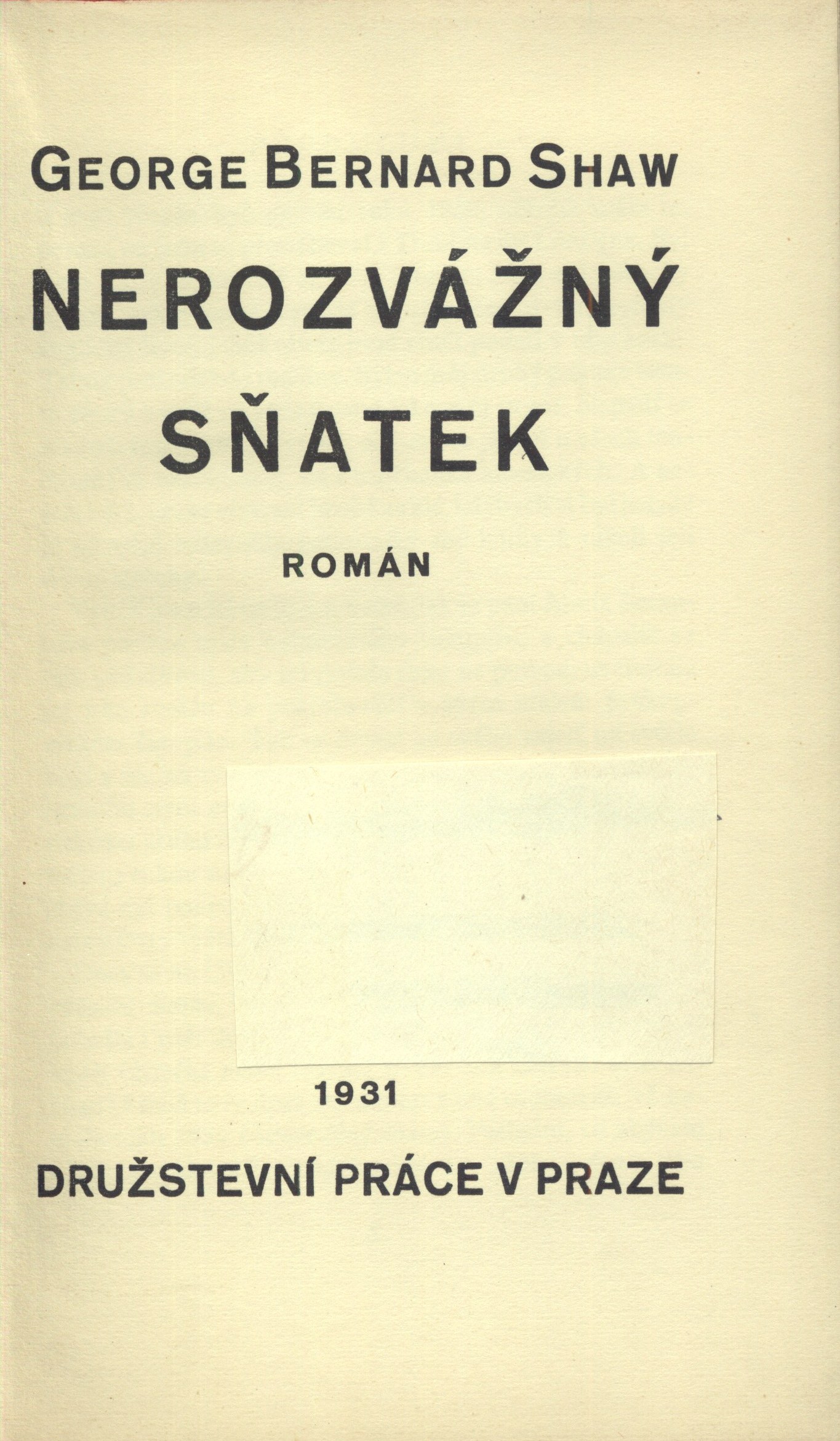1. Title informationNerozvážný sňatek = (The Irrational Knot) : román / George Bernard Shaw ; z angličtiny přeložil Alfred Pflanzer