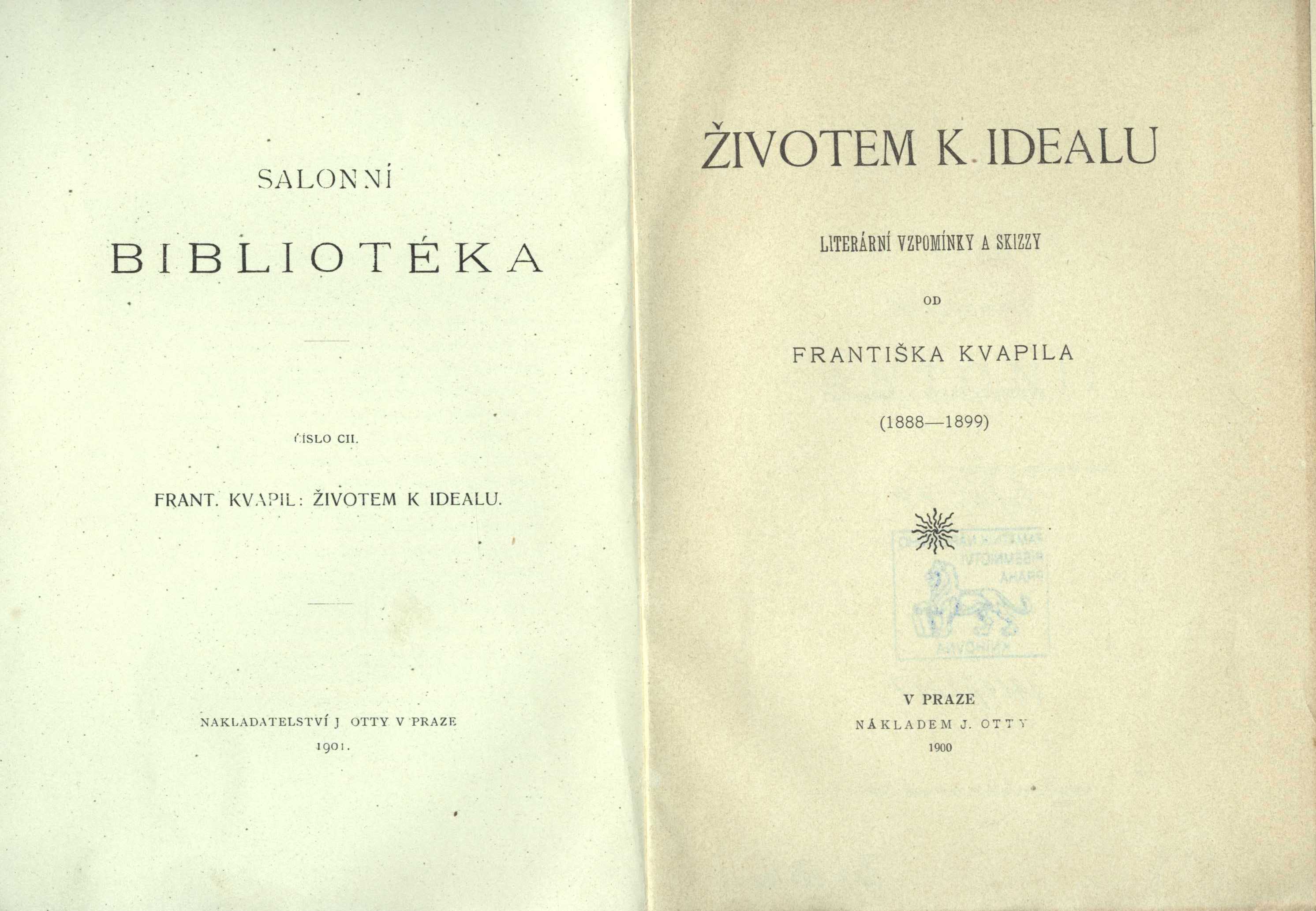 Salonní bibliotéka (J. Otto)Country Czech Republic Language Czech Note Na obálce a proti titul. listu uveden rok vydání 1901. - Na konci knihy seznam publikovaných prací autora. - Na obálce přehled ediční literatury.