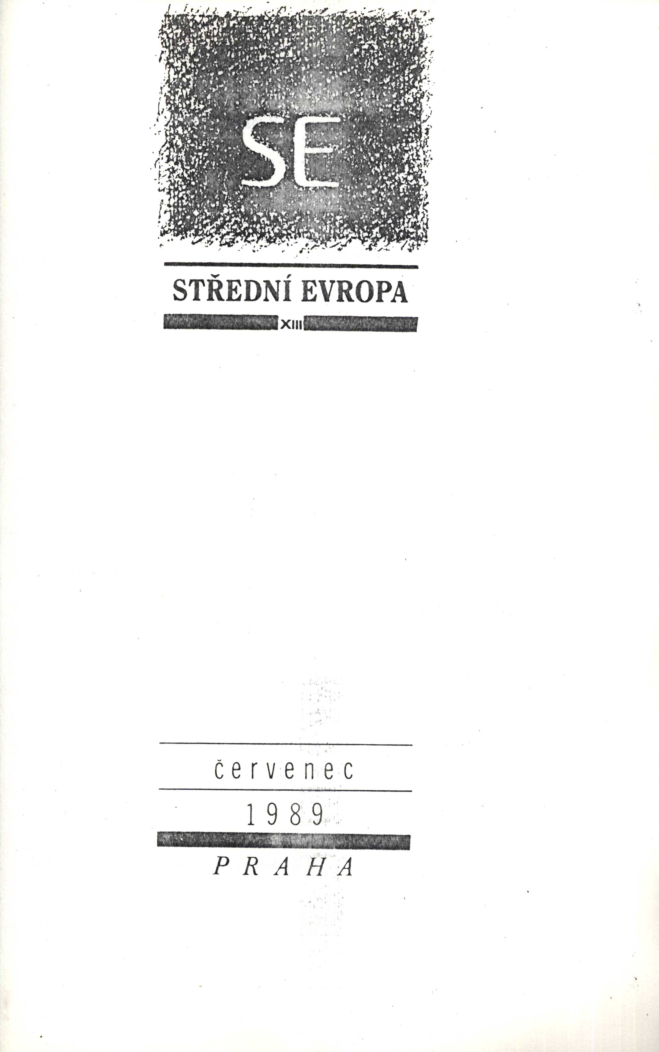 Title information Střední Evropa Roč., číslo Číslo 13, 1989 Publication Praha : [nakladatel není známý], 1989 Scope 202 stran, 1 nečíslovaná strana obrazové přílohy : ilustrace ; 32 cm ISBN (Brožováno) Country Czech Republic Language Czech Note Frontispis. - Úvodní poznámka. - Čb. ilustrace v obrazové příloze. - Rozmnoženo. - Samizdat. - Číslo 13 z července 1989
