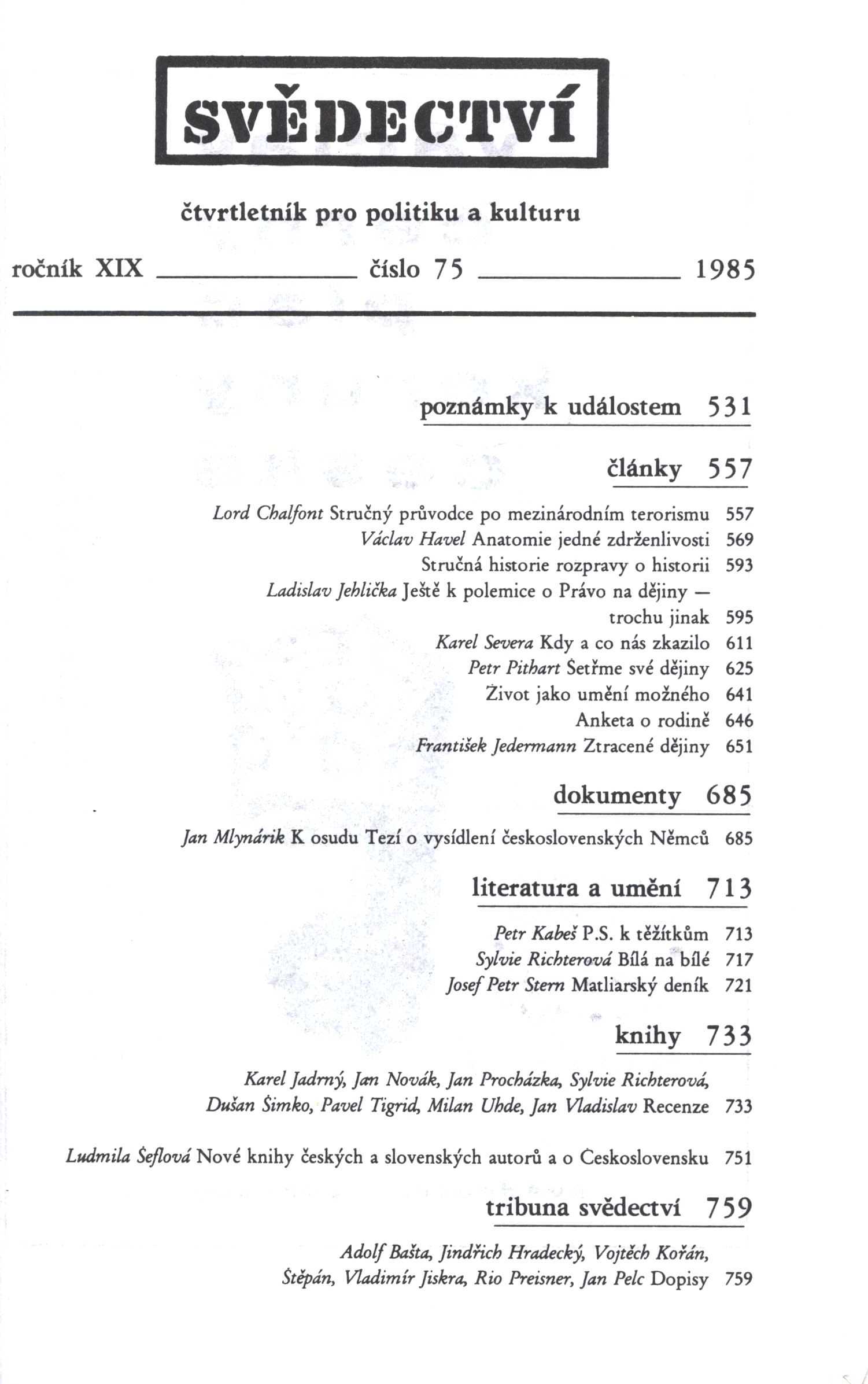 1. Title informationSvědectví : čtvrtletník pro politiku a kulturu
